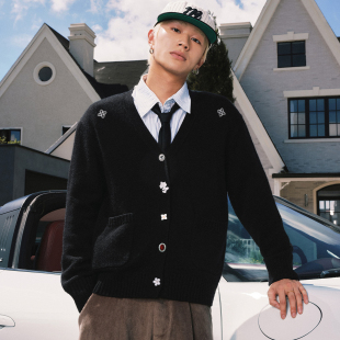 V领针织衫 MEDM 宽松情侣同款 毛衣美式 外套秋 简约纯色纽扣休闲开衫