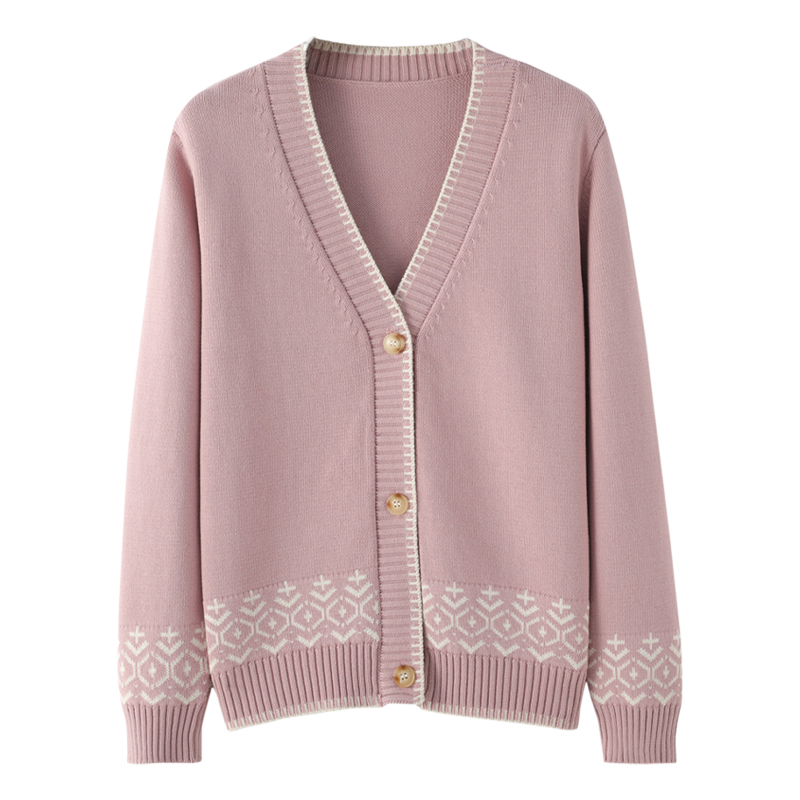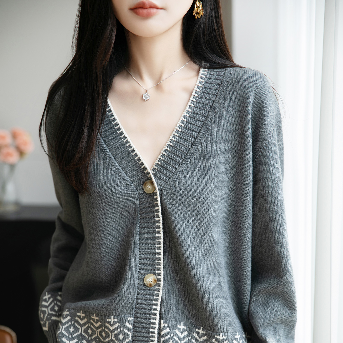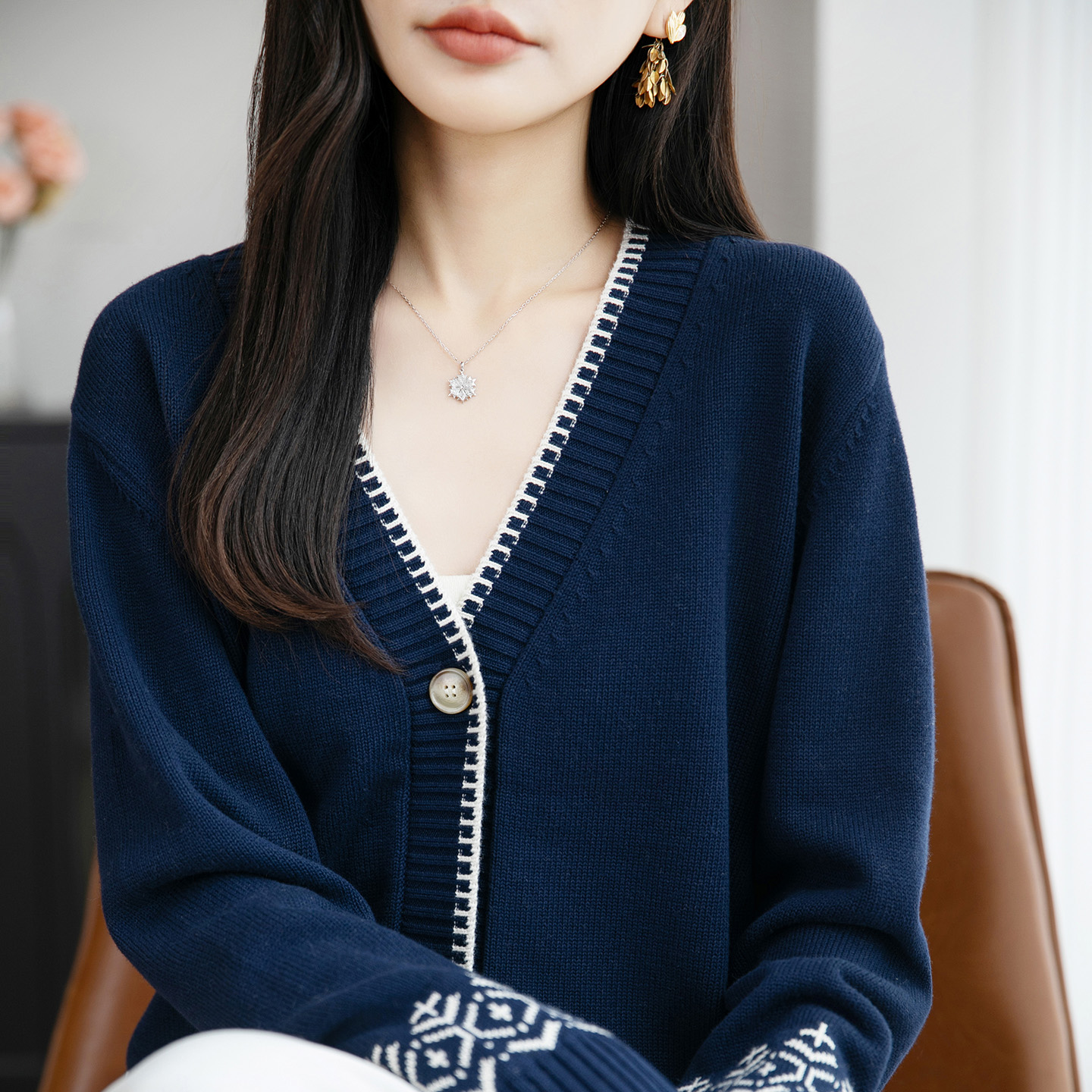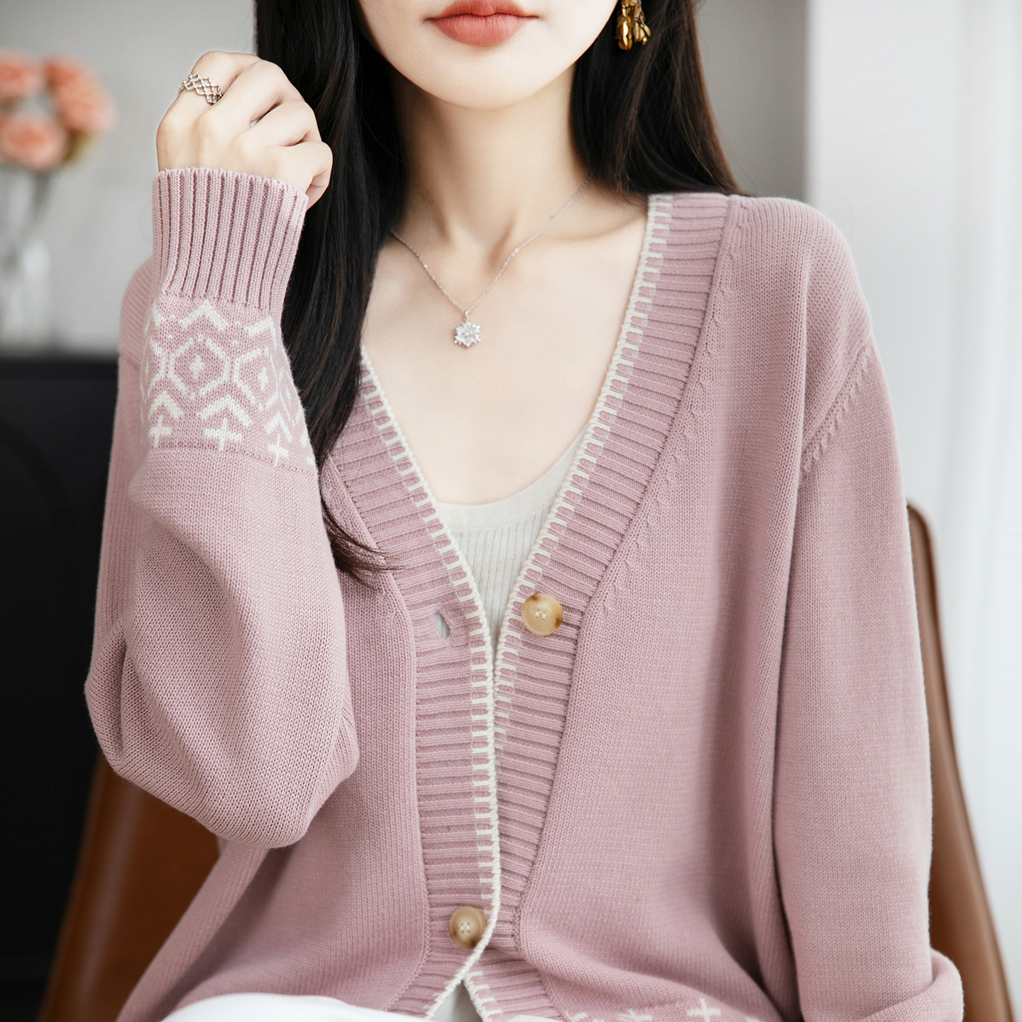 设计感纯棉毛衣外套加厚外搭上衣 女秋冬新款 法式 提花纯棉针织开衫