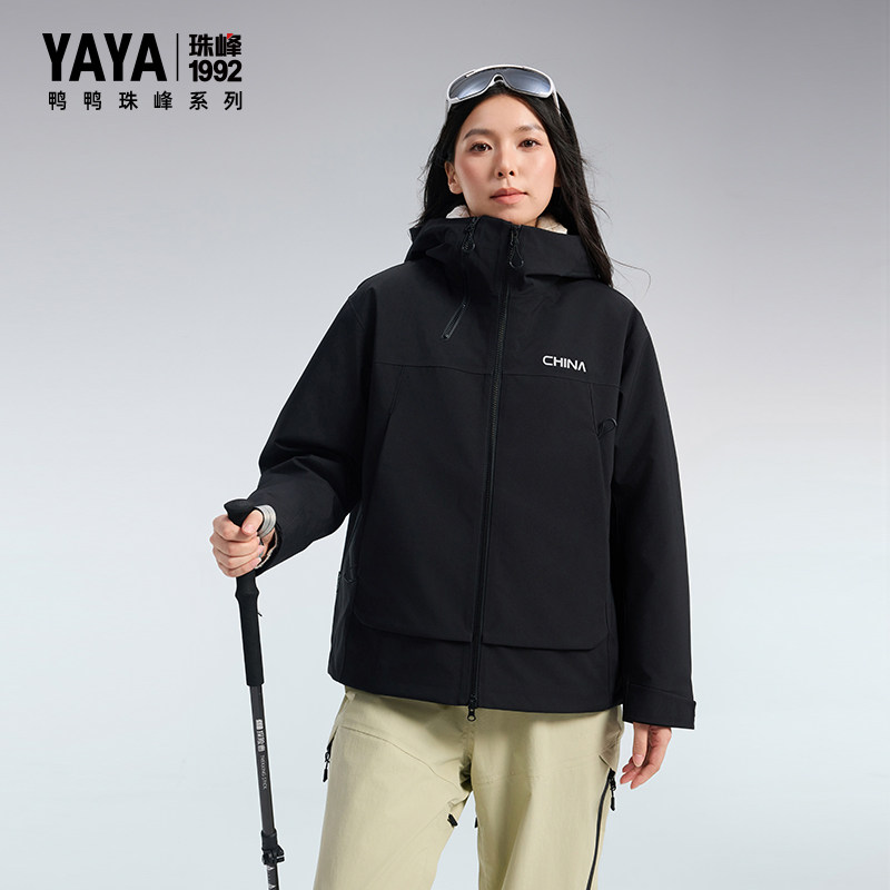 胖mm冬季 女一体无胆白鸭绒羽绒冲锋衣 都市户外羽绒服木子理想大码