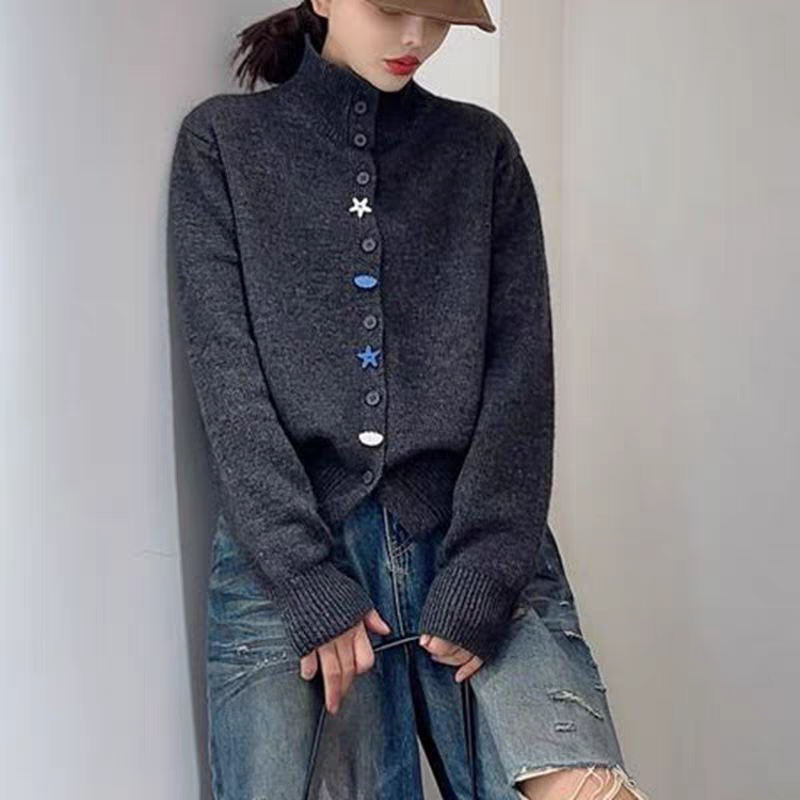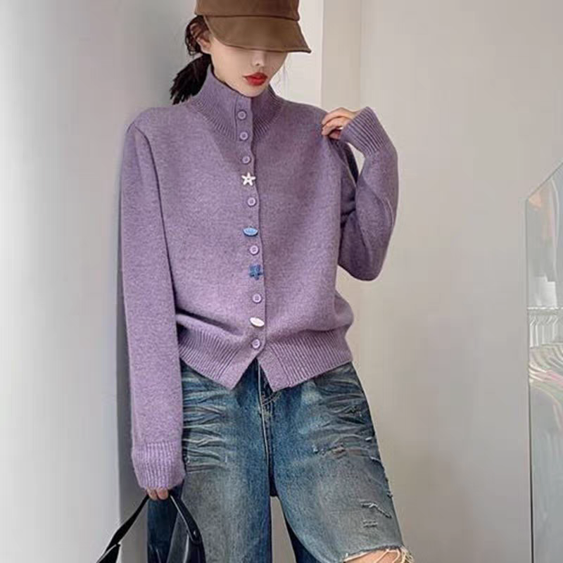 毛衣外套上衣彩扣宽松显瘦打底衫 针织衫 女高领长袖 861秋冬新款