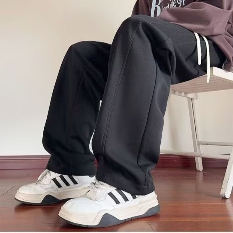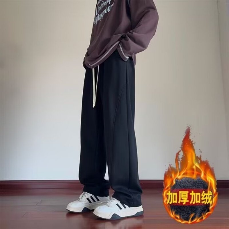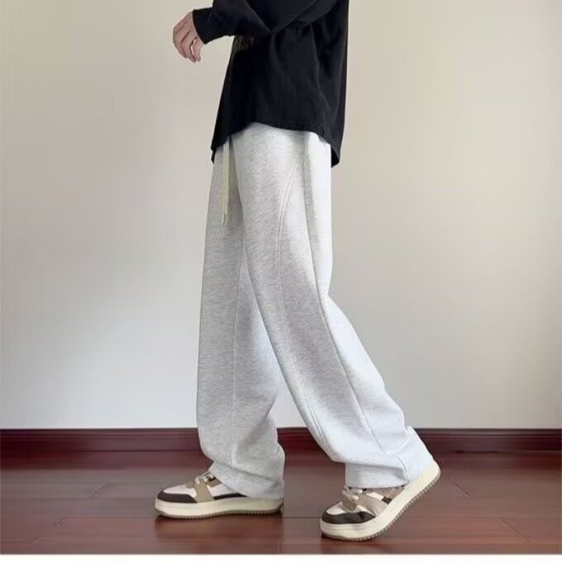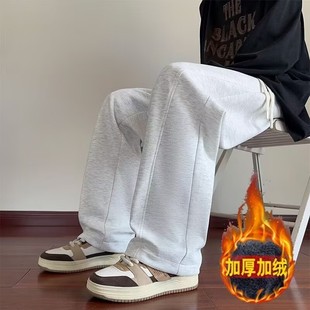 休闲百搭加绒加厚宽松运动裤 灰色弯刀卫裤 直筒裤 春秋2026新款 男士