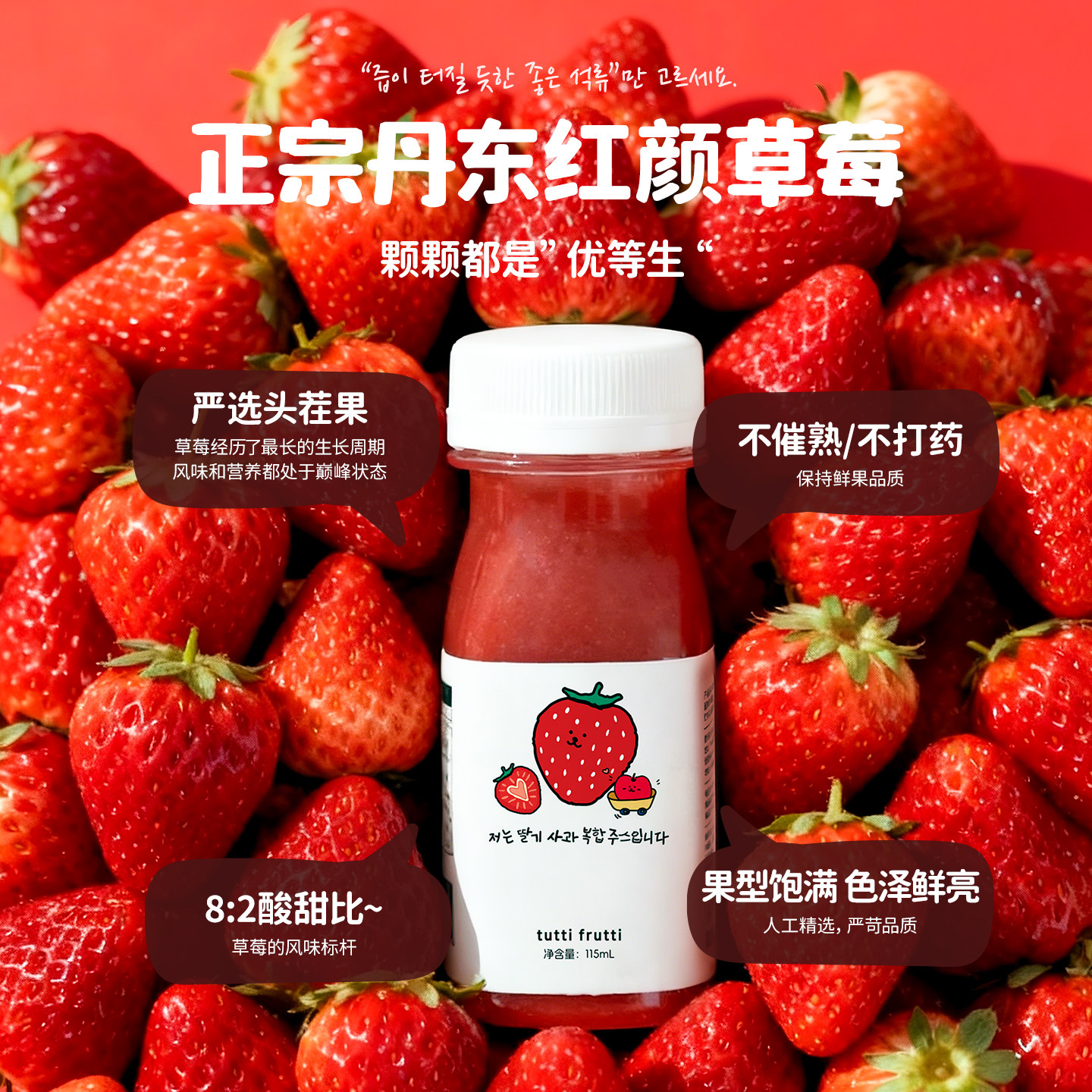 TuttiFrutti100%HPP草莓汁宝宝儿童nfc果汁0添加液体沙拉 新品