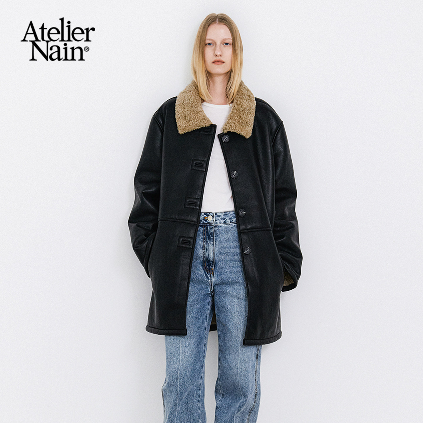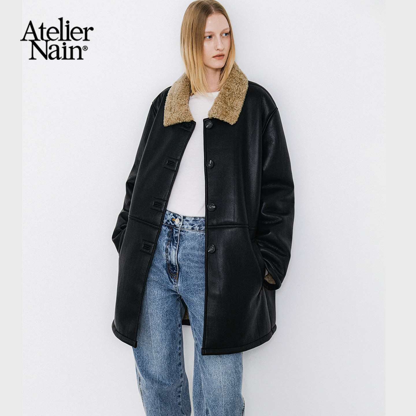 亮面皮中外套法式 新款 复古皮衣加绒女气质外套 爱依服2025冬季 IEF