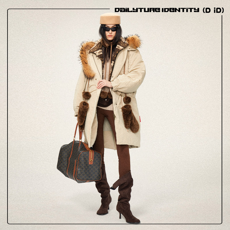 DID Allison不对称可拆貉子毛领90白鸭绒中长派克服25冬新 DAILY
