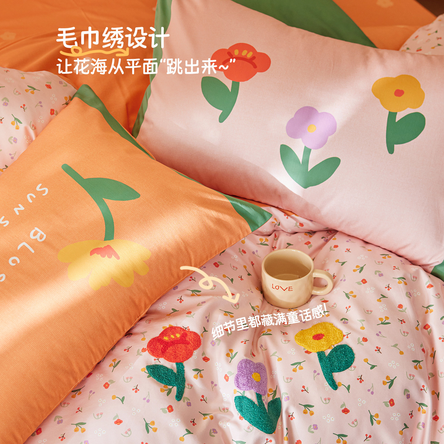 多喜爱四件套全棉刺绣床品纯棉花卉套件四季 床单被套被罩学生套件