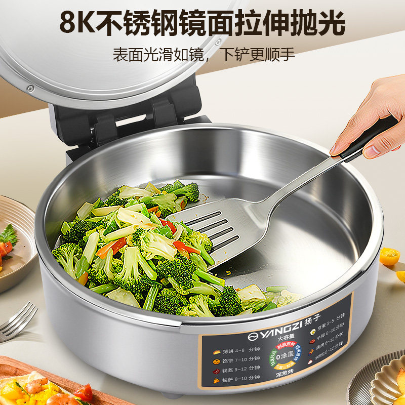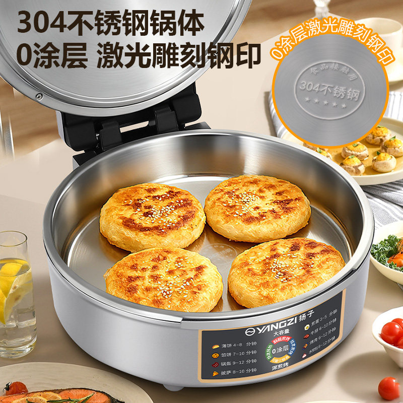 扬子304不锈钢电饼铛家用0涂层电煎锅双面加热多功能烙饼锅电饼档