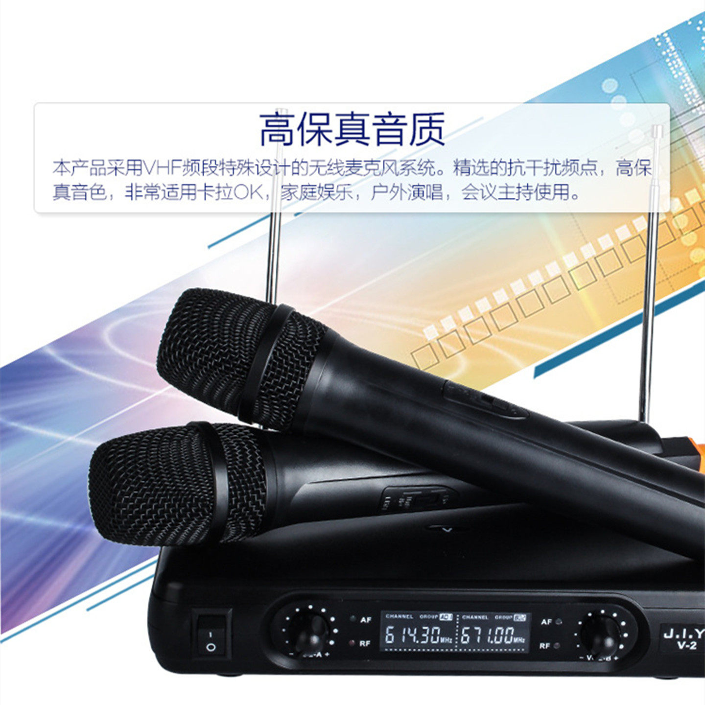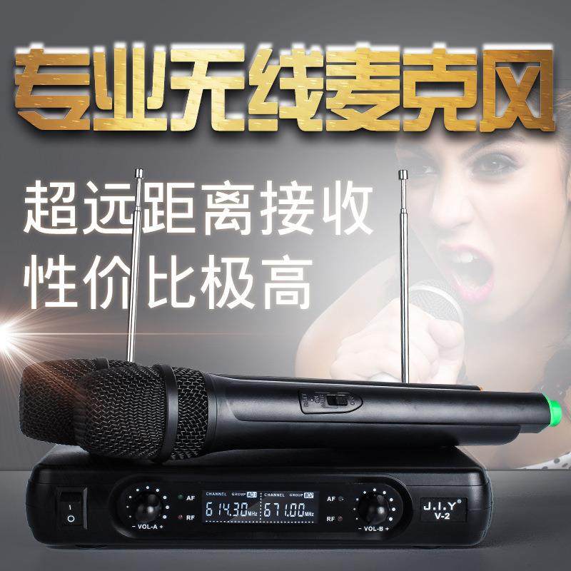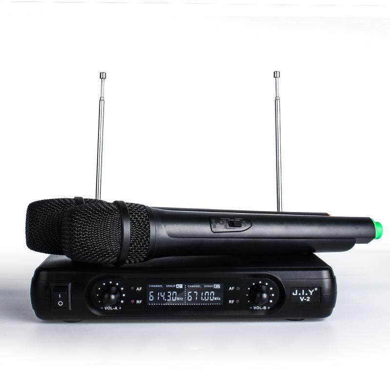 JIY无线麦克风一拖二话筒防啸叫电视音箱KTV音响手持式 声卡双声道