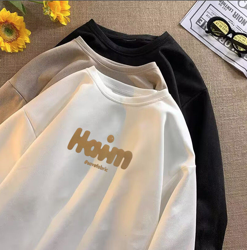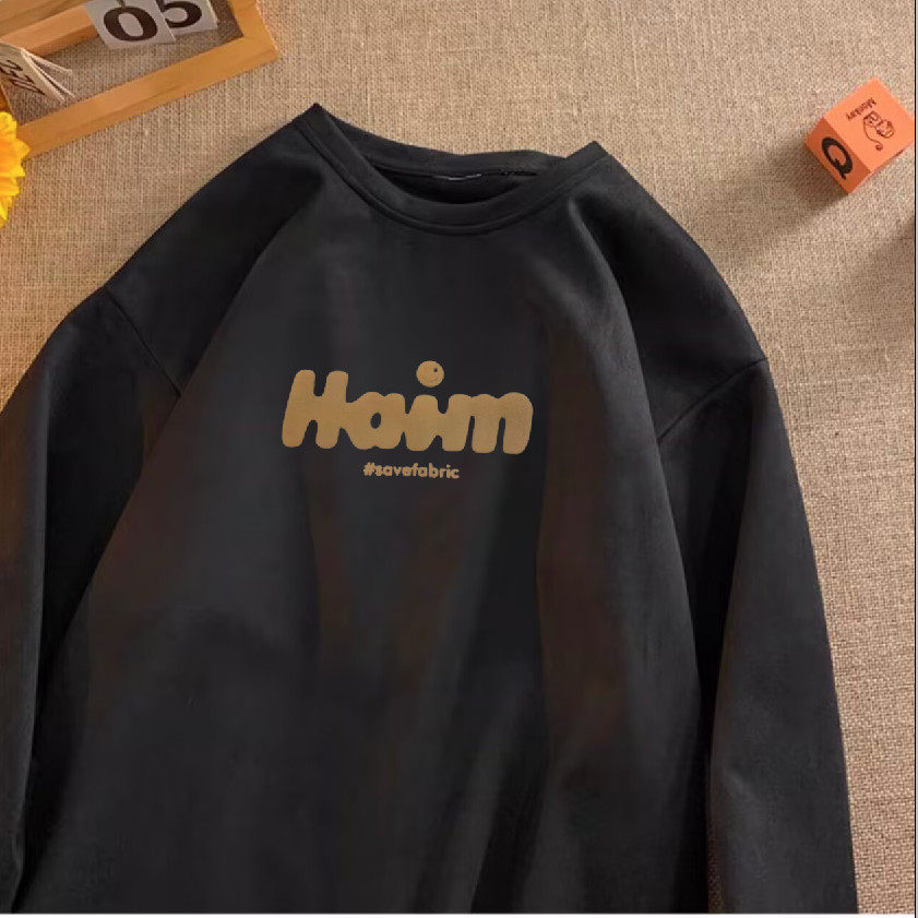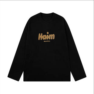 精品 潮流发泡印花仿麂皮绒长袖 满68 2025春秋男美式 T恤 包邮