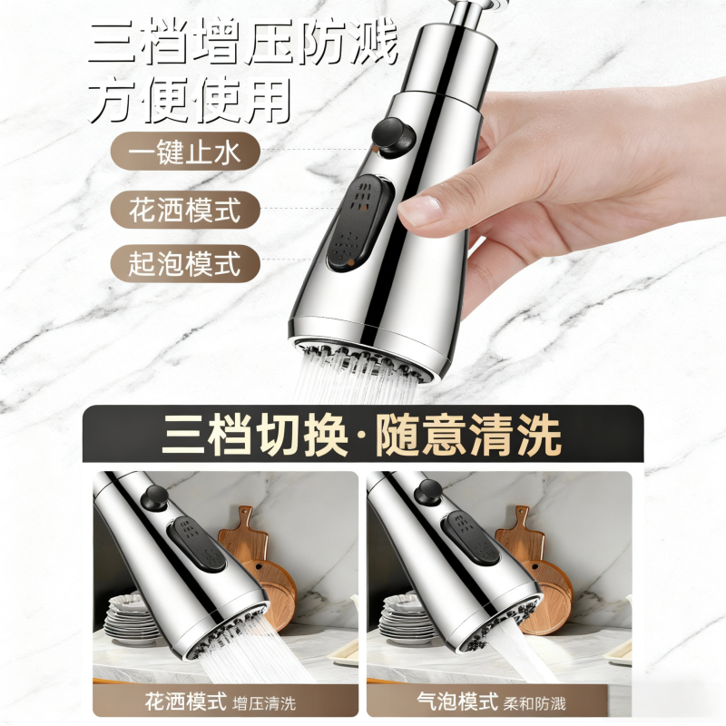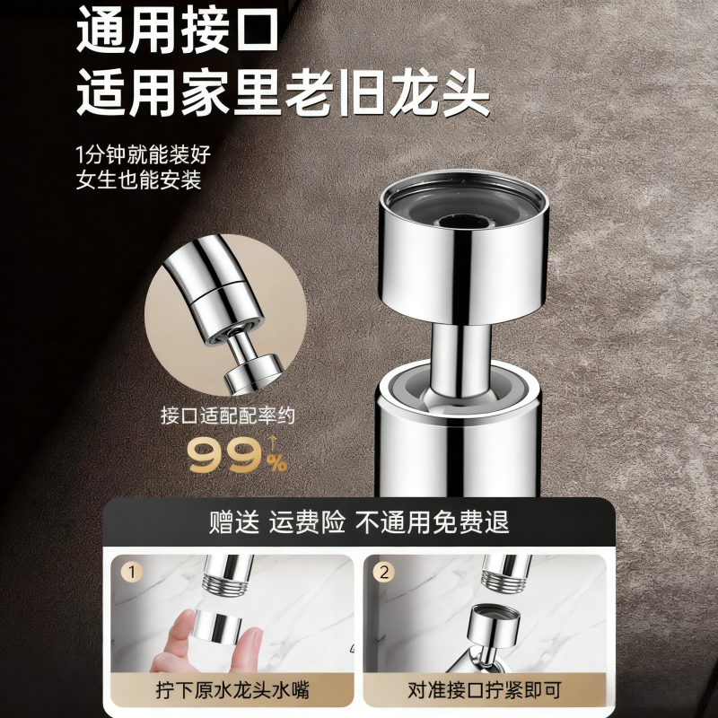厨房洗菜盆水龙头万向旋转延伸器万能套嘴接头防溅水神器花洒加长