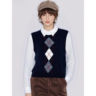 新款 百家好100%羊毛针织马甲女2026春季 叠穿坎肩毛衣 House Basic