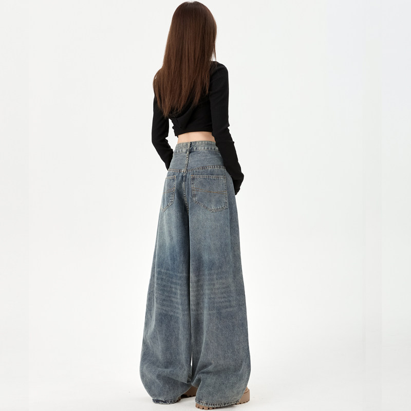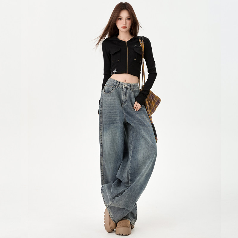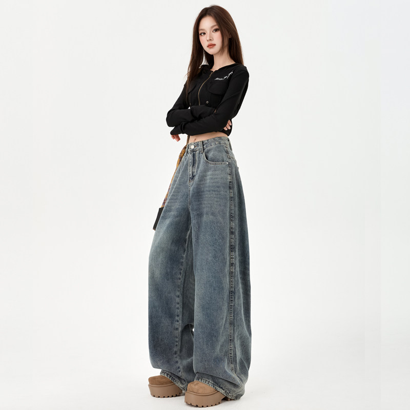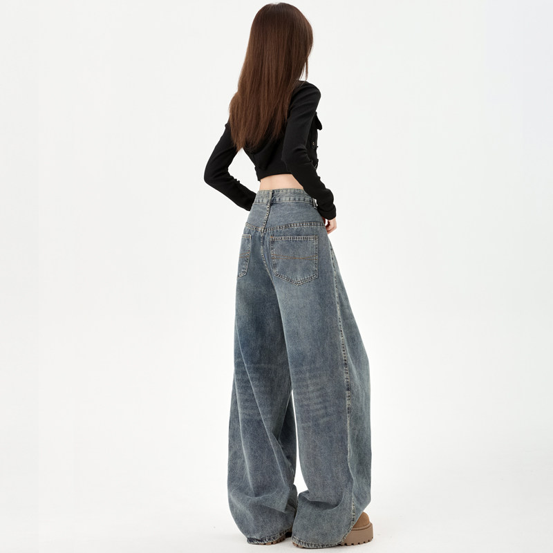 宽松梨形遮胯显瘦大阔腿裤 女秋冬新款 复古垂感牛仔裤 艾格Etam美式