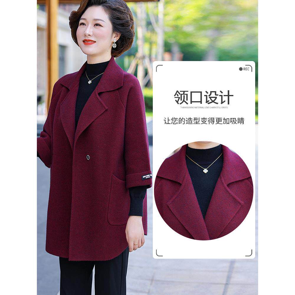 春秋毛呢子大衣 外套洋气高贵风衣中老年女装 2025新款 中年妈妈秋装