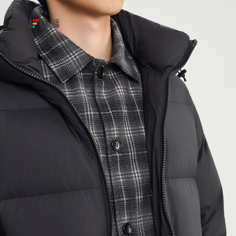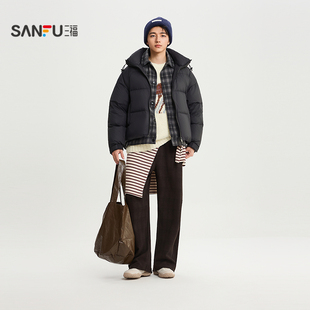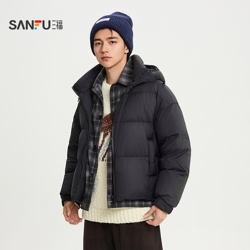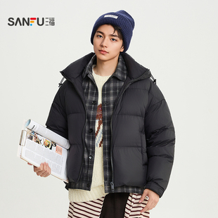 三福2025冬季 假两件连帽羽绒服加厚运动学院风保暖外套514470 男士