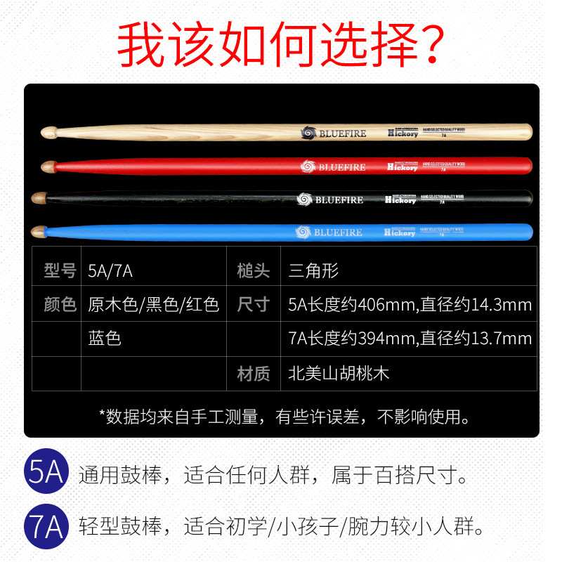 汉旗蓝火系列5A汉胡桃木鼓棒牌山架子鼓HUN北美棍爵士鼓鼓槌鼓7a