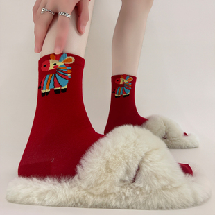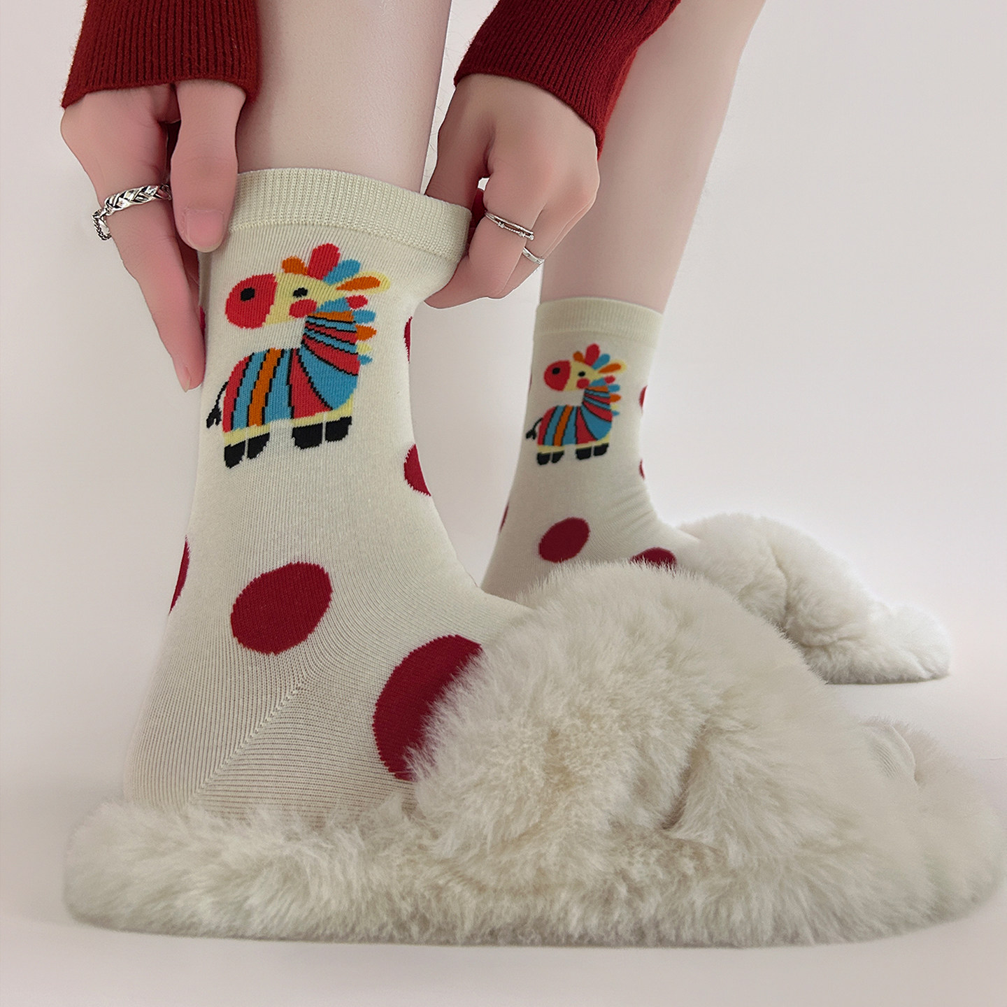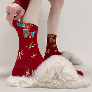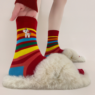 羊毛袜子女冬季 超厚中筒袜加绒加厚保暖棉袜睡眠条纹羊绒月子长袜