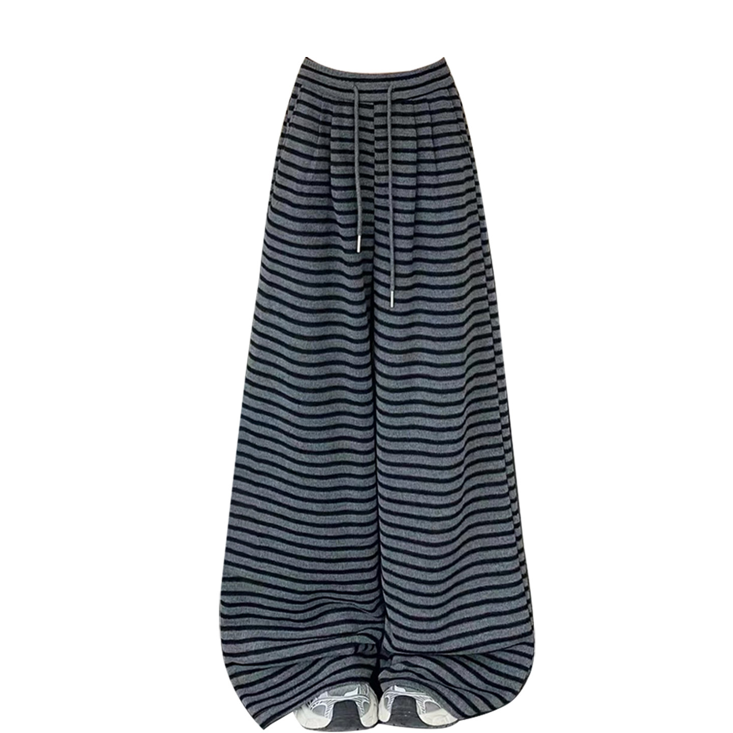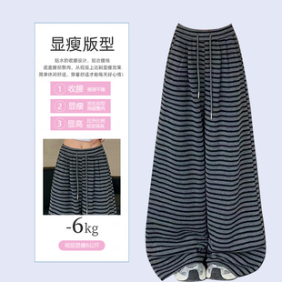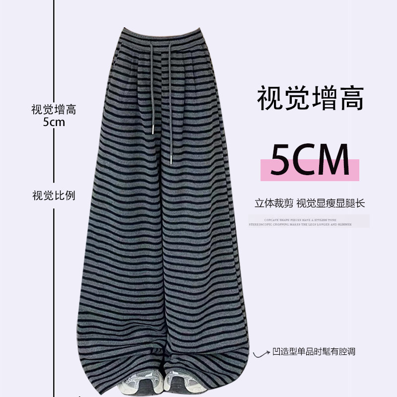学生显瘦直筒裤 大码 女早春穿搭新款 胖mm韩系穿搭条纹休闲裤 子 女装