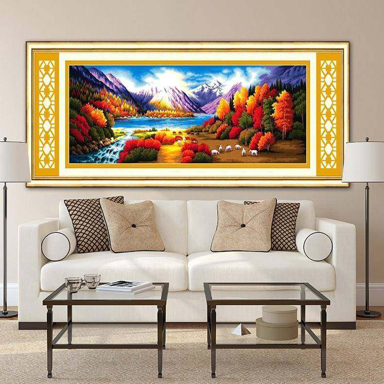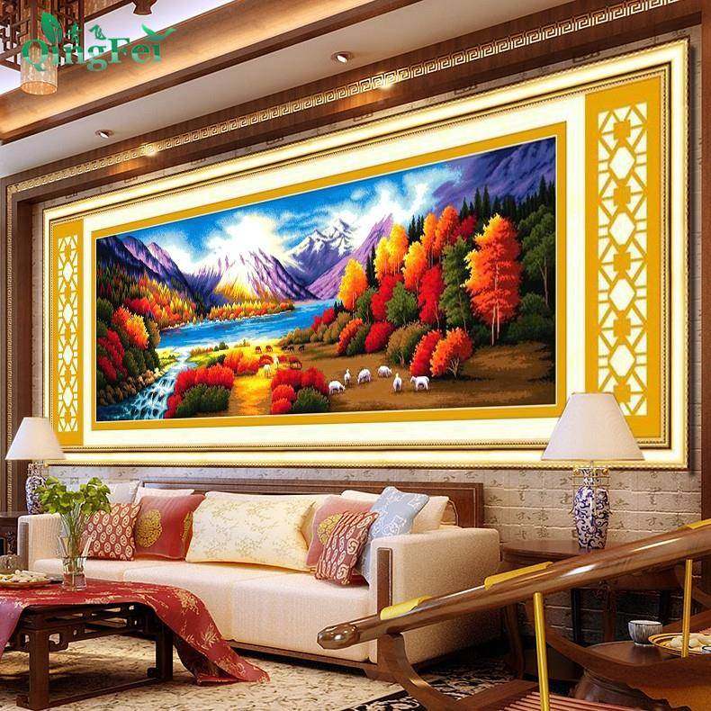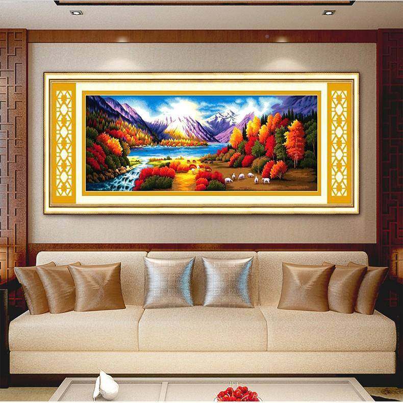 秋色伊人十字绣大客秋水伊人厅风枫树金幅色富锦富士山景线绣钻有