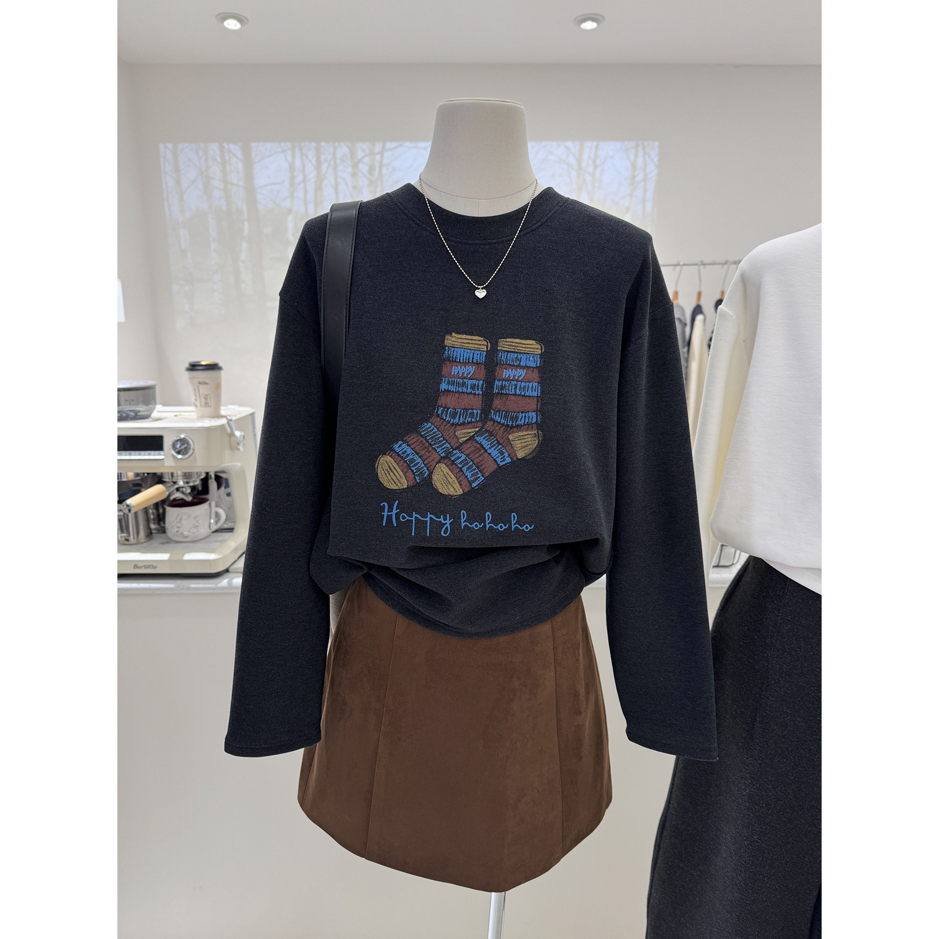 马登黑白色基础款 t恤宽松内搭卫衣上衣女秋 针织纯棉打底磨毛长袖