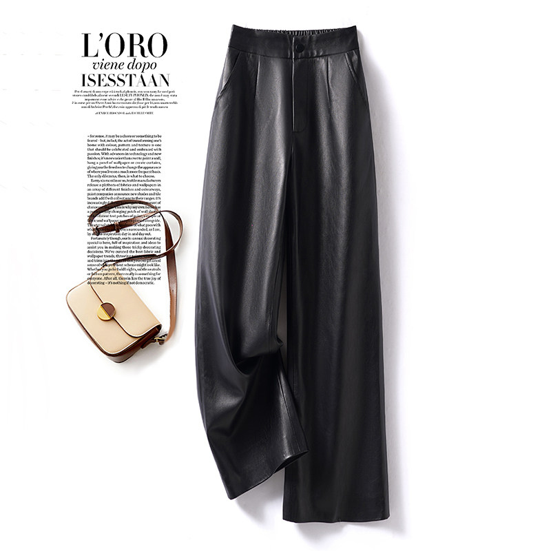 高腰显瘦直筒休闲裤 海宁真皮皮裤 绵羊皮修身 2025秋冬新款 女九分裤