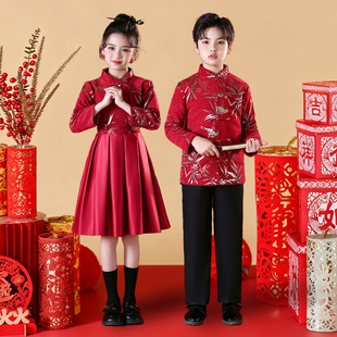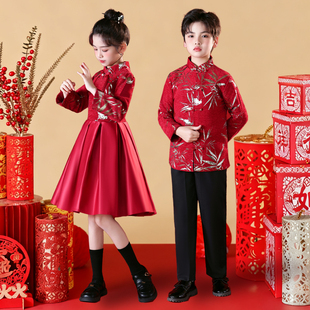 汉服男女童2025冬款 旦演出服宝宝拜年服新年过节喜庆服 加绒加厚元