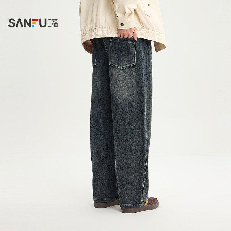 休闲宽松直筒长裤 分割设计复合牛仔裤 514365 男士 三福2025冬季