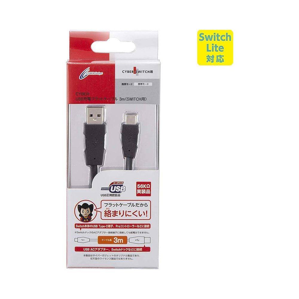 USB 扁平充电线 Lite 日本直邮 黑 Switch CYBER 适用于 3米