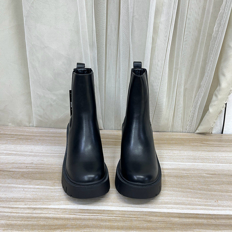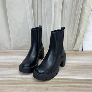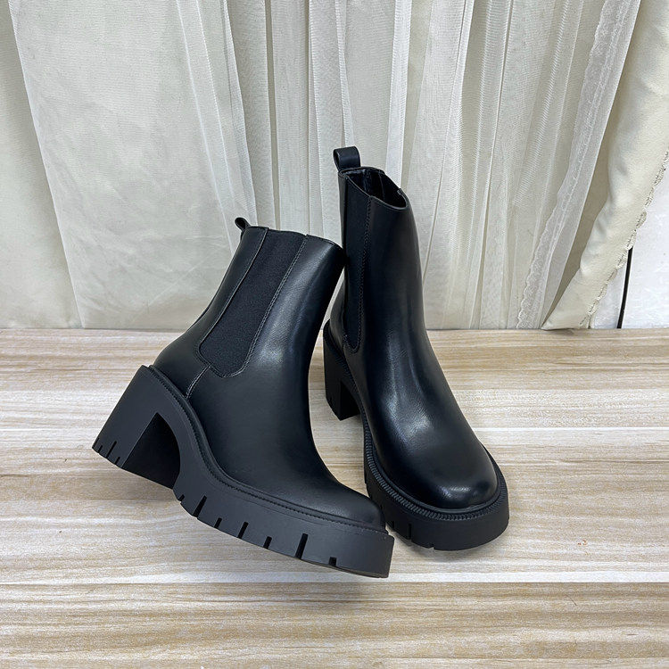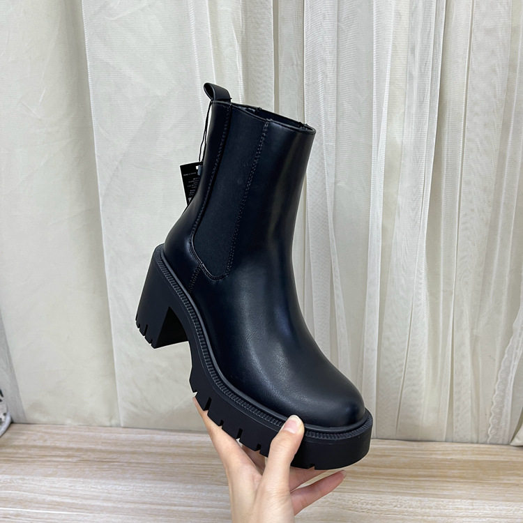 Lady 圆头纯色粗高跟防水台套筒短靴烟筒靴 Shoes外贸原单女靴时尚