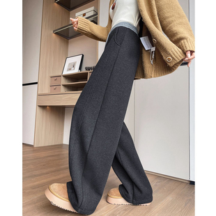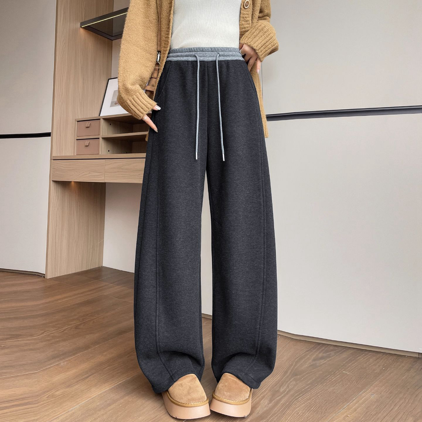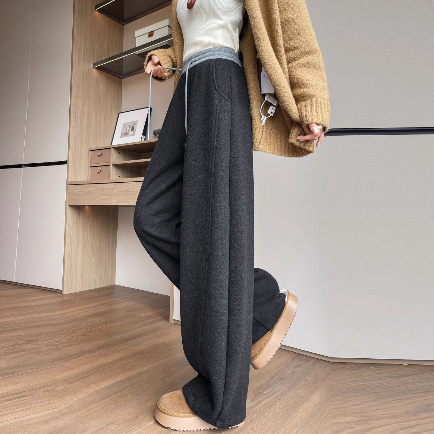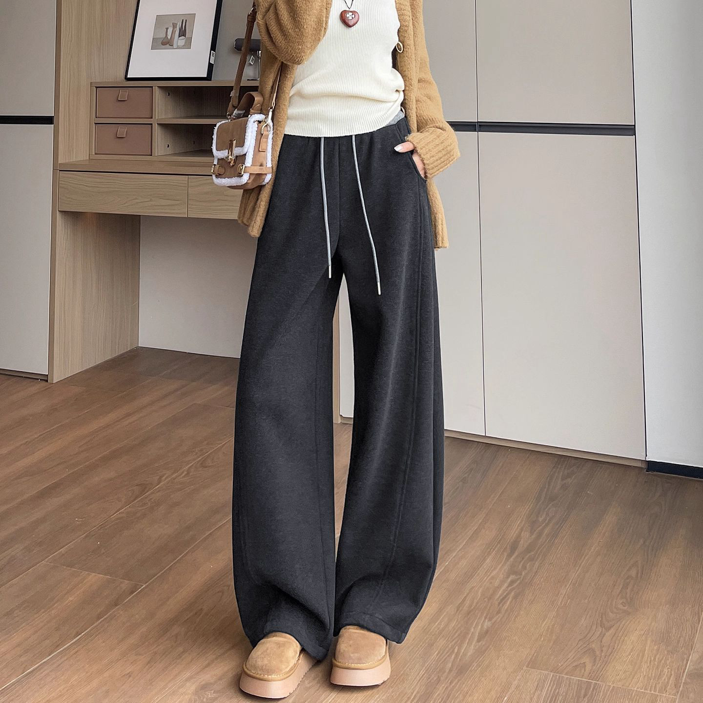 休闲宽松bf慵懒风运动加绒阔腿弯刀裤 新款 女秋冬时尚 深灰色糯米裤