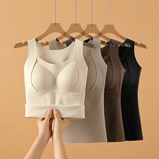 德绒保暖吊带背心女2026新款 秋冬内搭加绒发热无痕带胸垫一体内衣