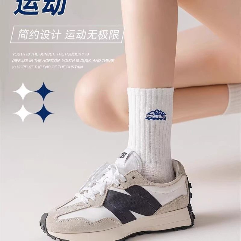 白色袜子男女运动袜中筒袜春秋季 学生情侣百搭潮袜透气吸汗长筒袜