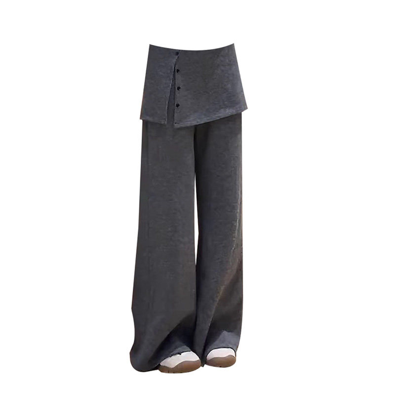 显瘦垂感宽松阔腿运动卫裤 加绒加厚胖mm大码 女冬季 黑色直筒休闲裤