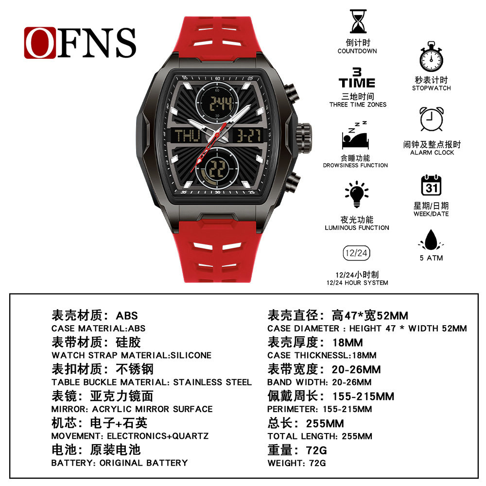 ins爆款 大表盘双显电子手表多功能闹钟防水学生贪睡简约运动腕表