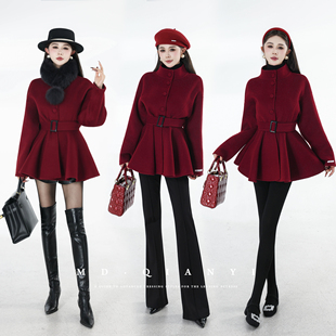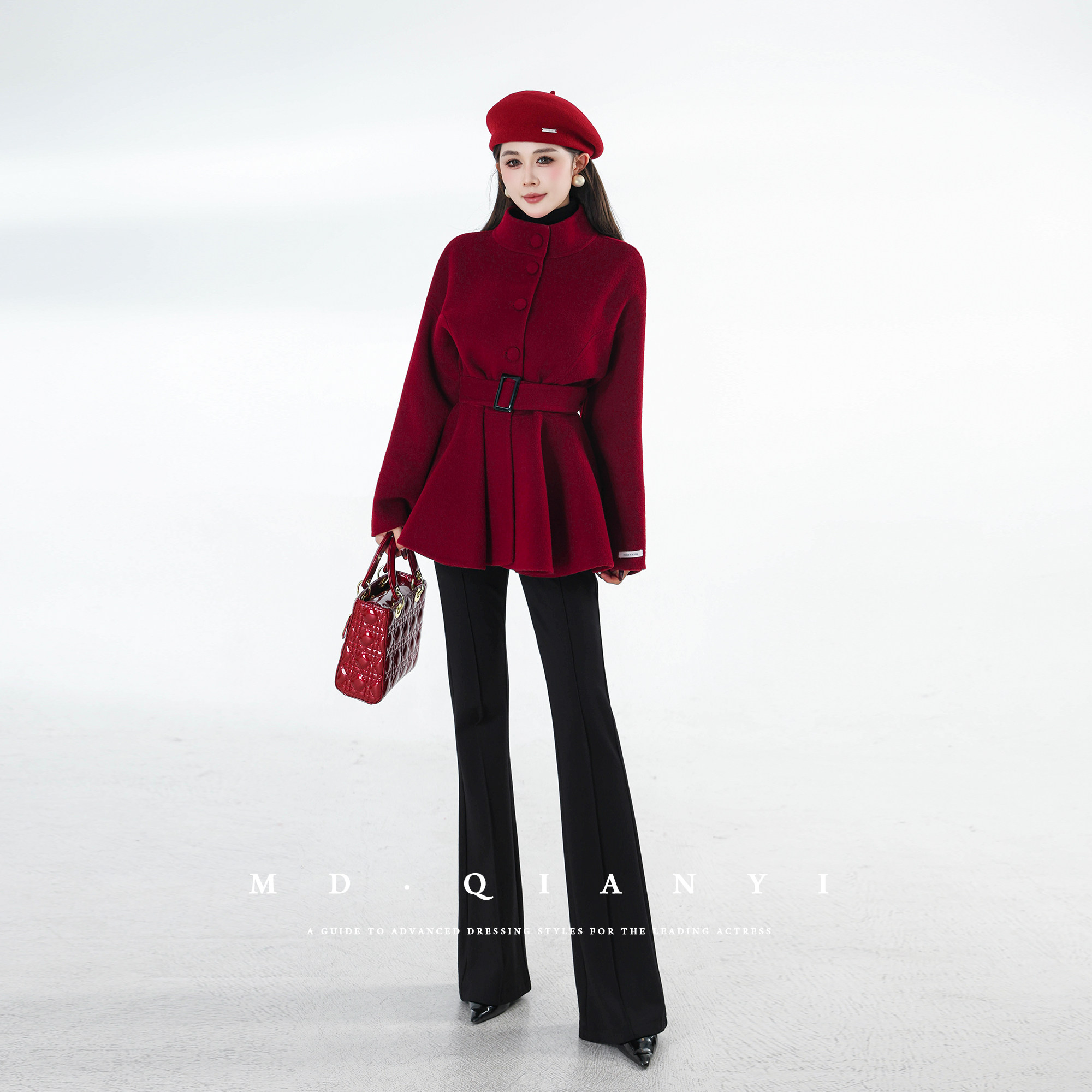 ArguE 高级外套 CulturE贵气红钻设计感廓形垫肩羊毛毛呢大衣长款