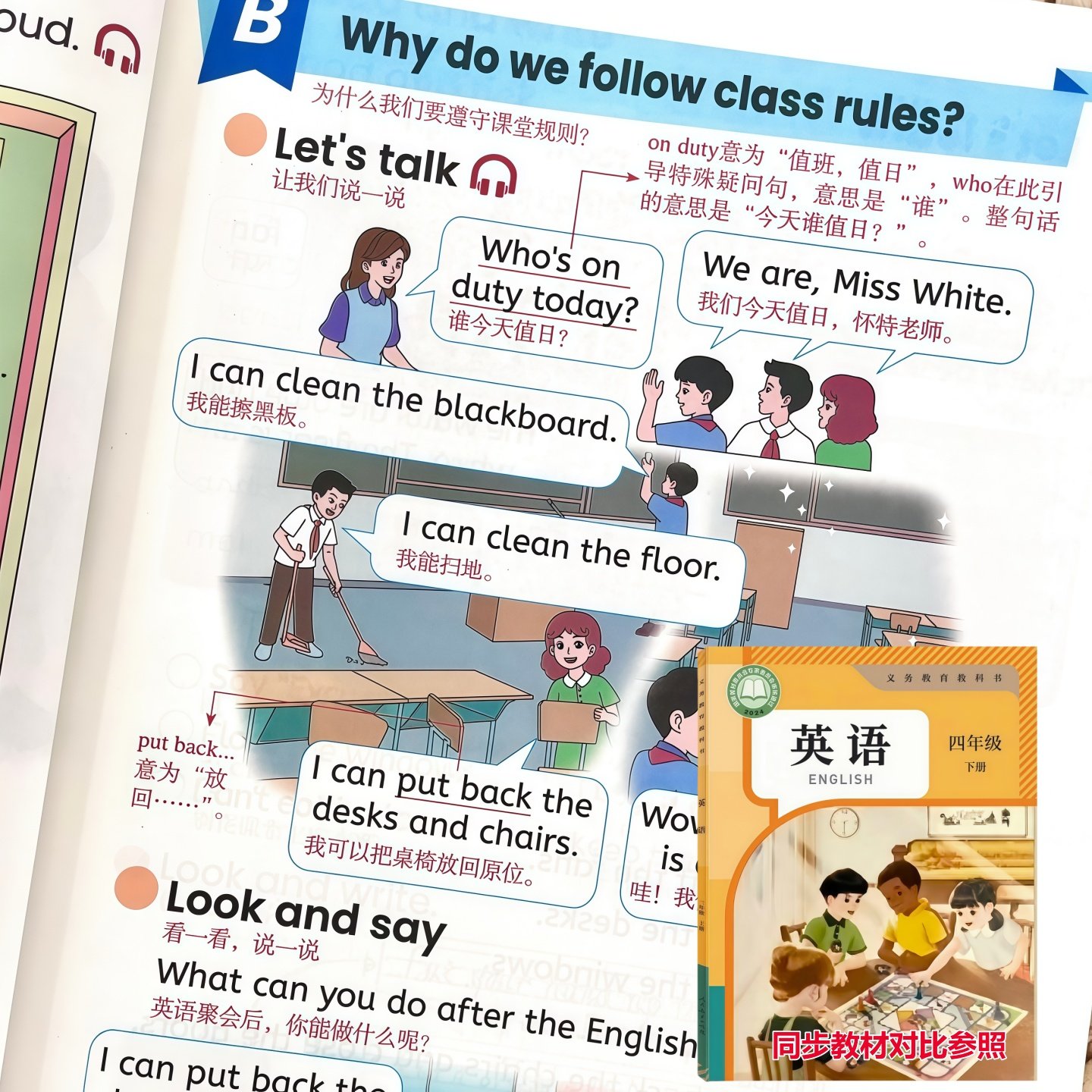 PEP课本四年级上册下册新版 pep课堂笔记同步新改版 英语课堂笔记教材讲解翻译书 四年级下册英语人教版 2026新版