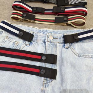 带 皮带日系简约懒人腰间学生裤 新品 乐扣条纹腰带女宽百搭配牛仔裤