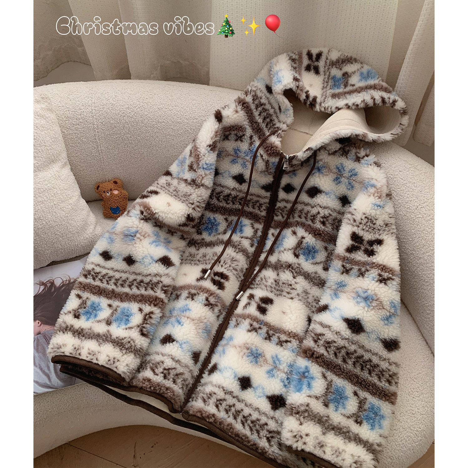 商品标签:费尔岛连帽中长款