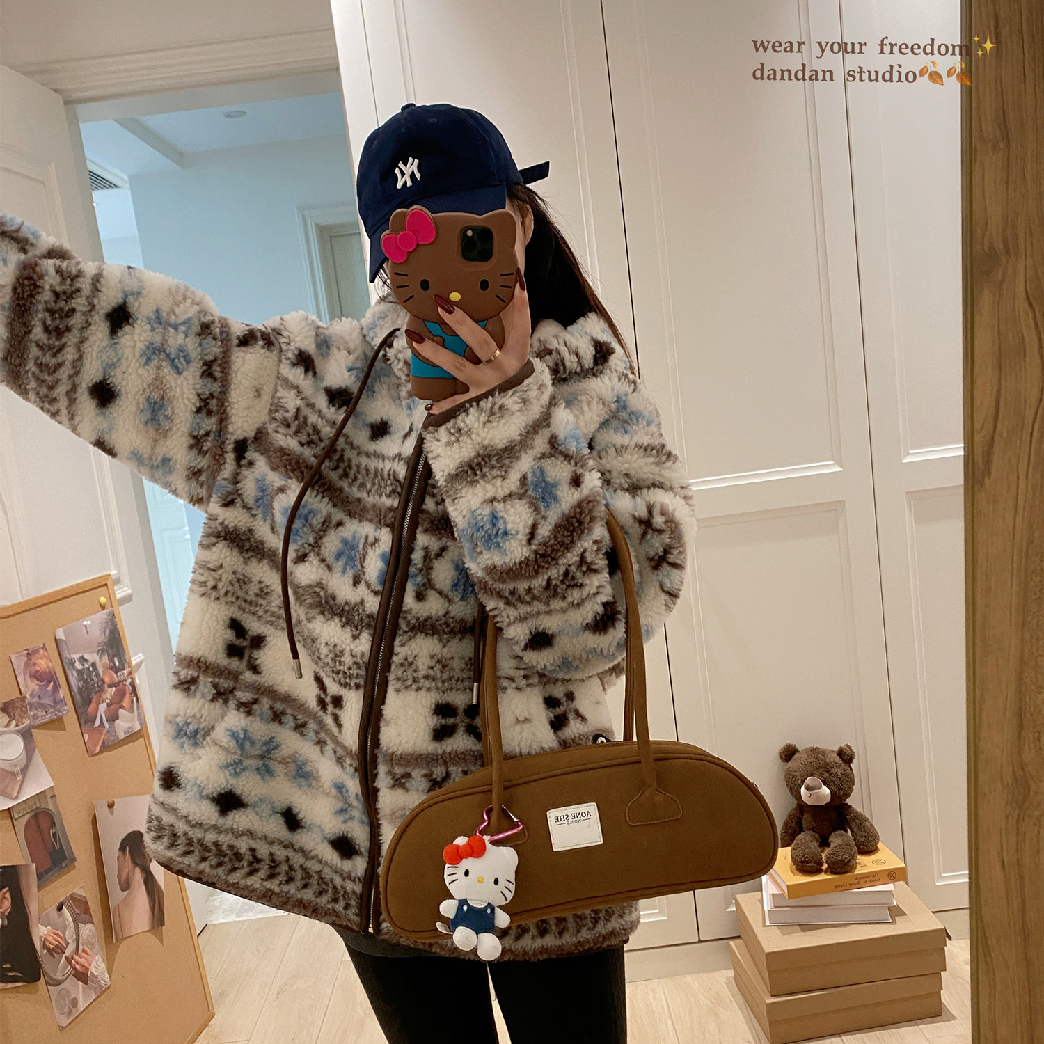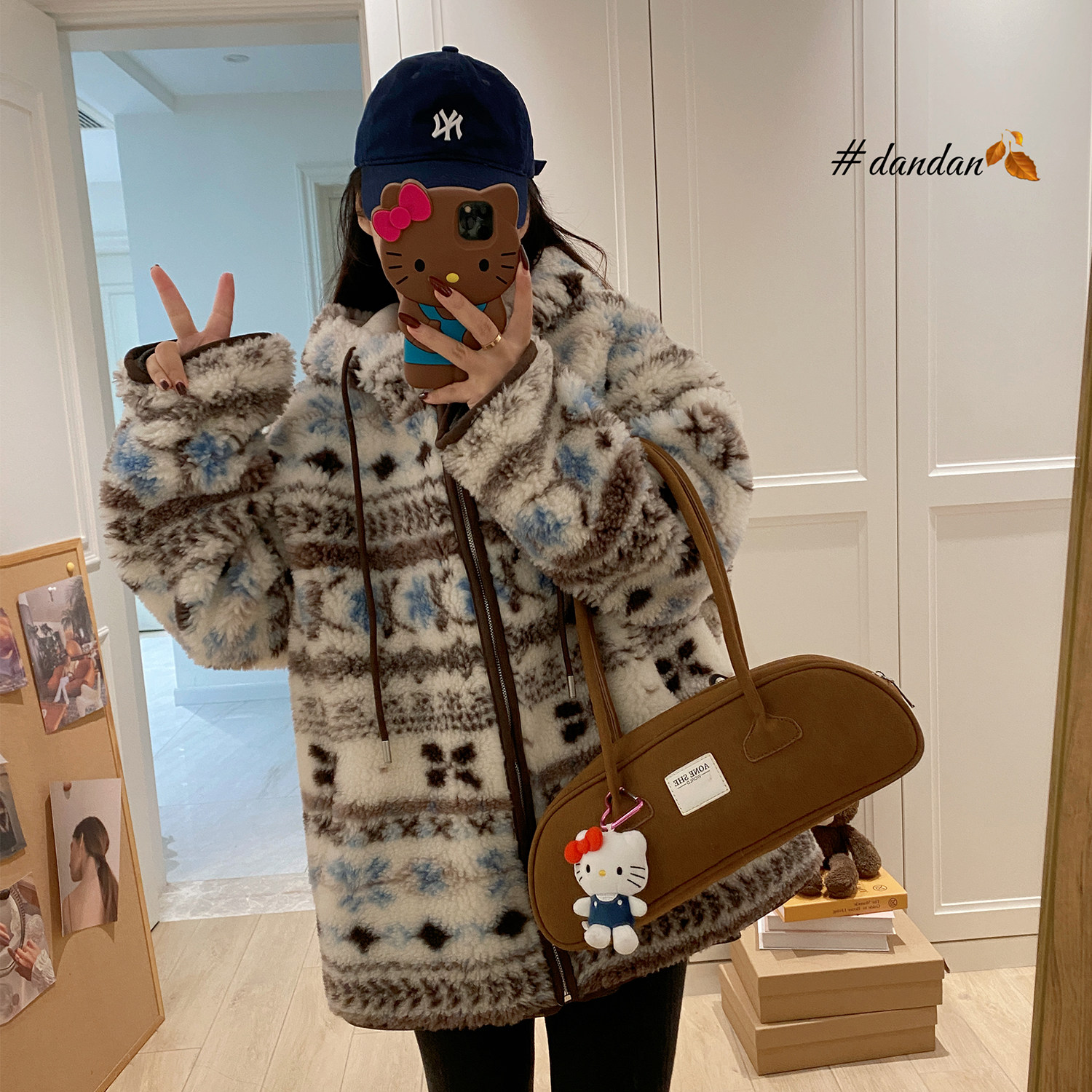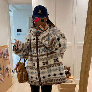 皮草毛毛外套女 连帽中长款 费尔岛 100真羊羔毛皮毛一体慵懒风冬季