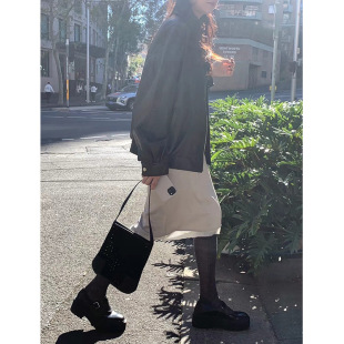 希宥HOUSE 复古翻领休闲皮衣夹克外套 韩国东大门款