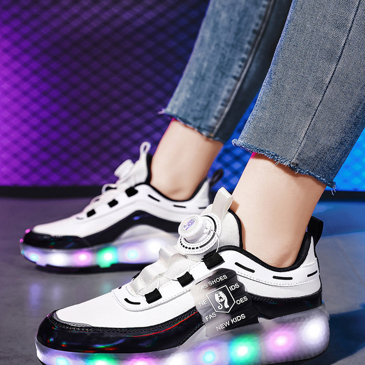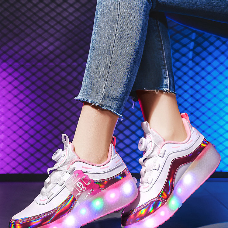 鞋 轮滑鞋 底有轮子 男女童暴走鞋 闪灯带轮子 轱辘爆走鞋 滑板轮子鞋