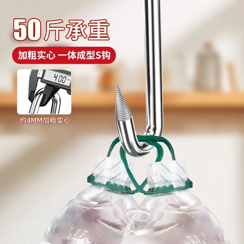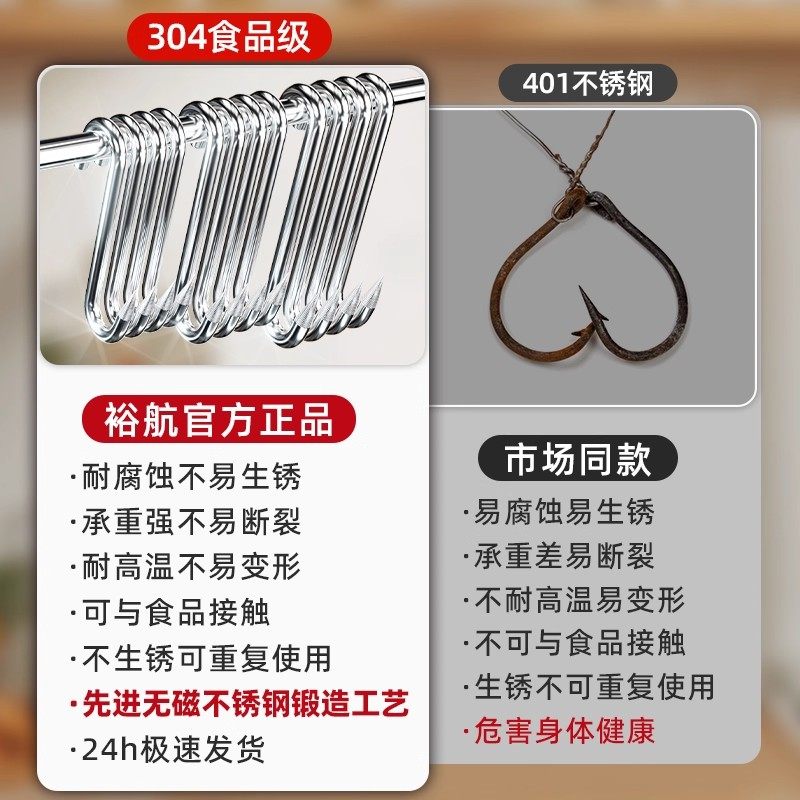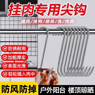 加粗S型晒腊肉挂钩304不锈钢大号实心挂猪肉香肠烤鸭尖头挂肉钩子