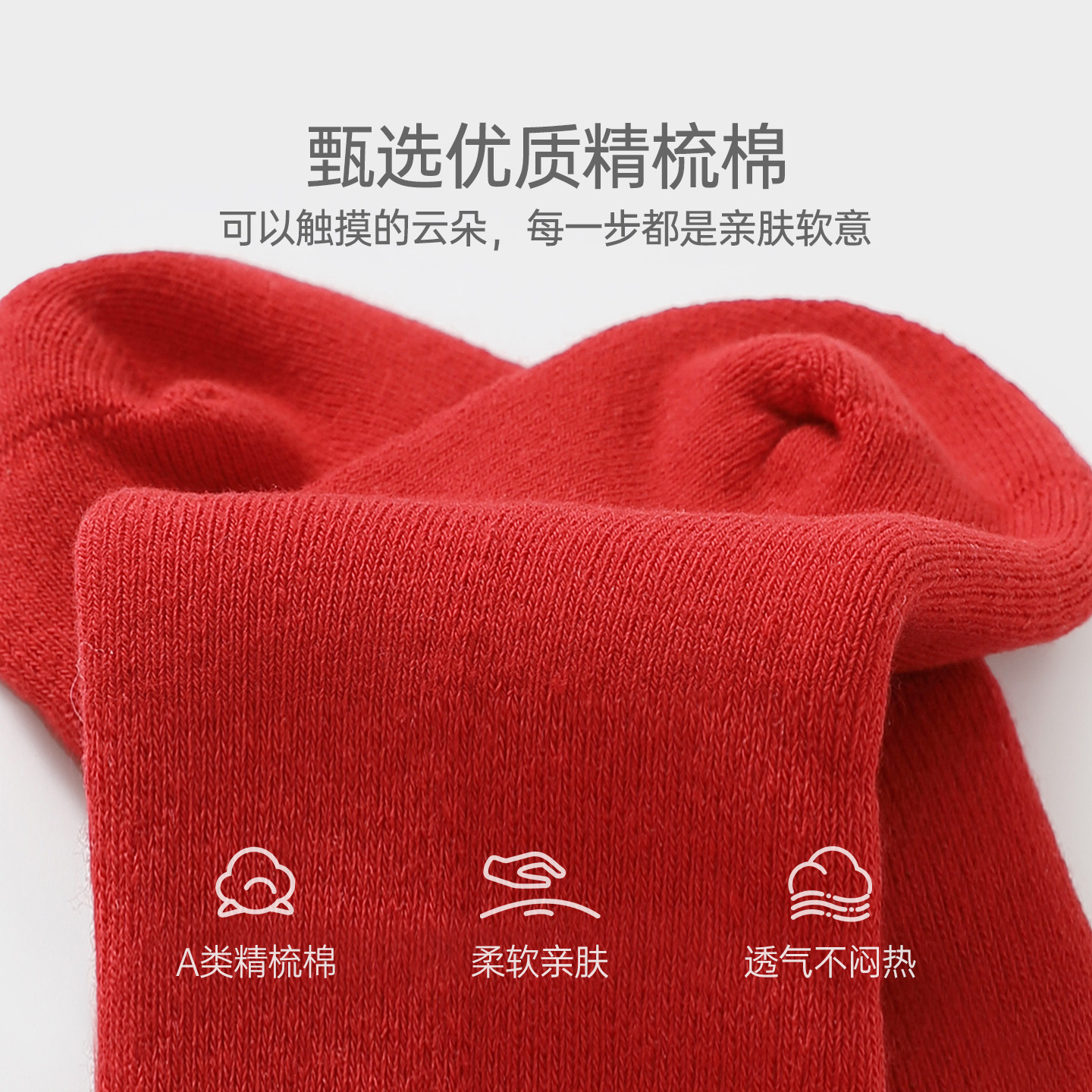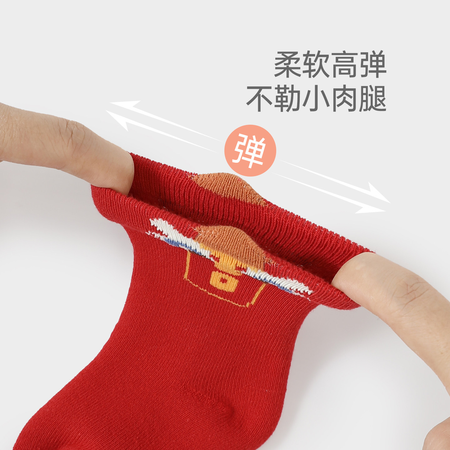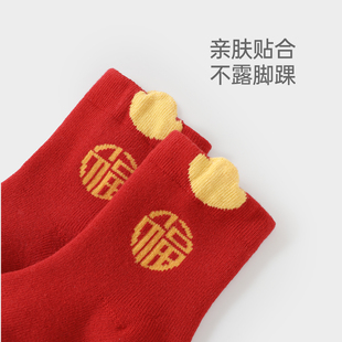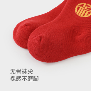 俏萌兔婴儿袜子秋冬保暖红色喜庆满月百天加厚棉袜宝宝新年中筒袜