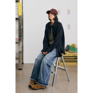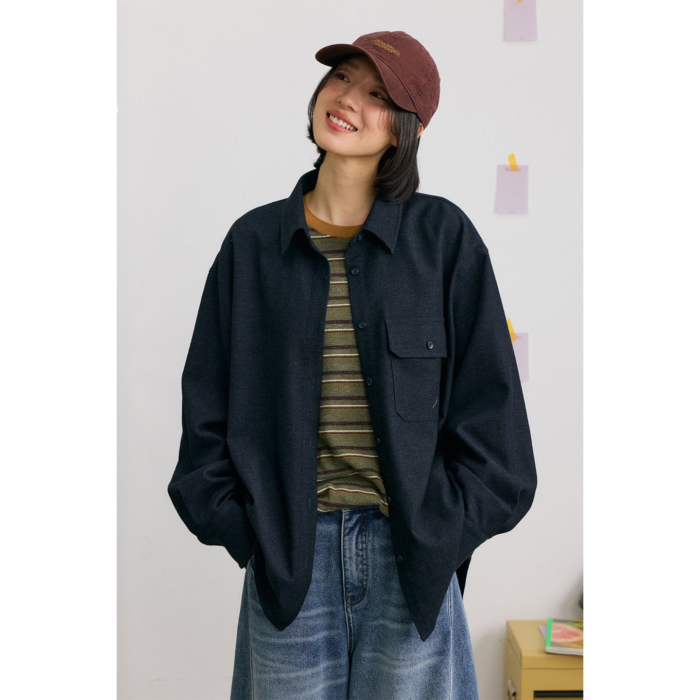7208 休闲日系保暖厚实两色叠穿宽松翻领衬衫 鹿与飞鸟 牛仔橡木