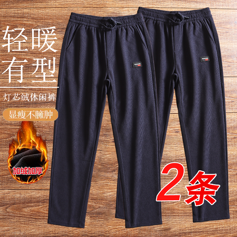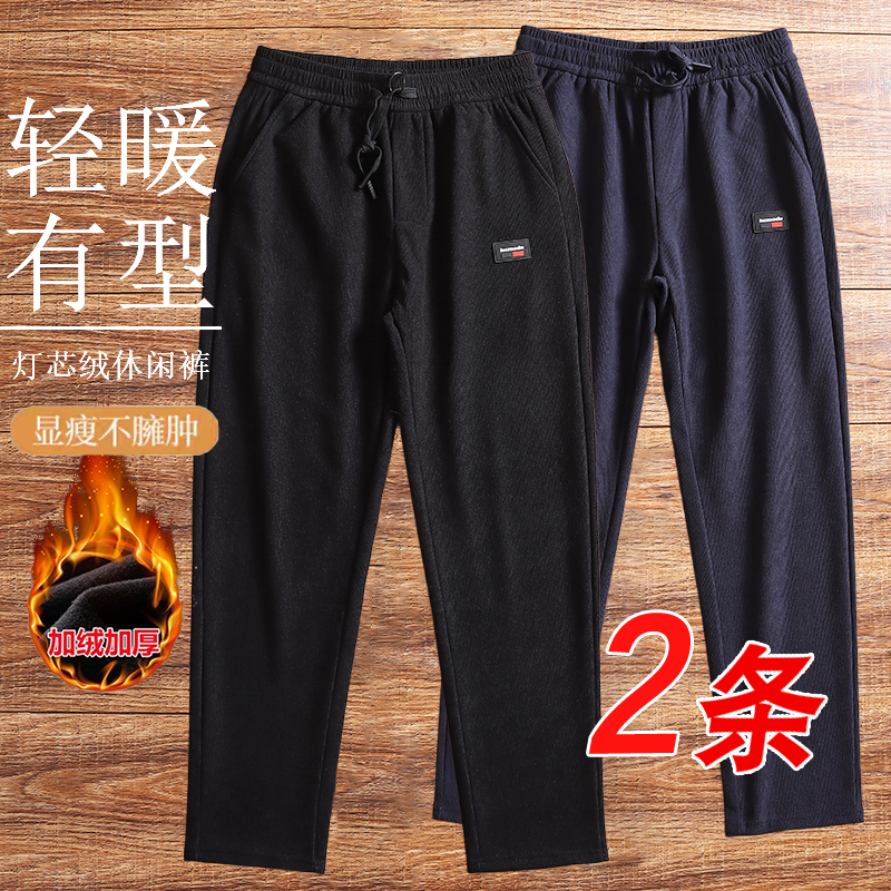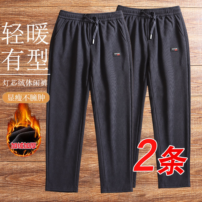 舒适百搭运动裤 灯芯绒休闲裤 男加绒加厚松紧腰抽绳直筒裤