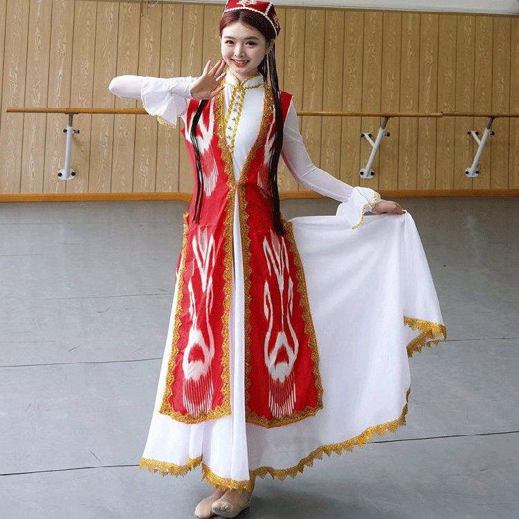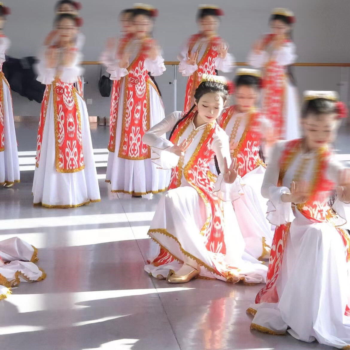 维吾族民族舞大摆裙连体服艺考套装 新疆舞蹈服装 演出服女成人新款
