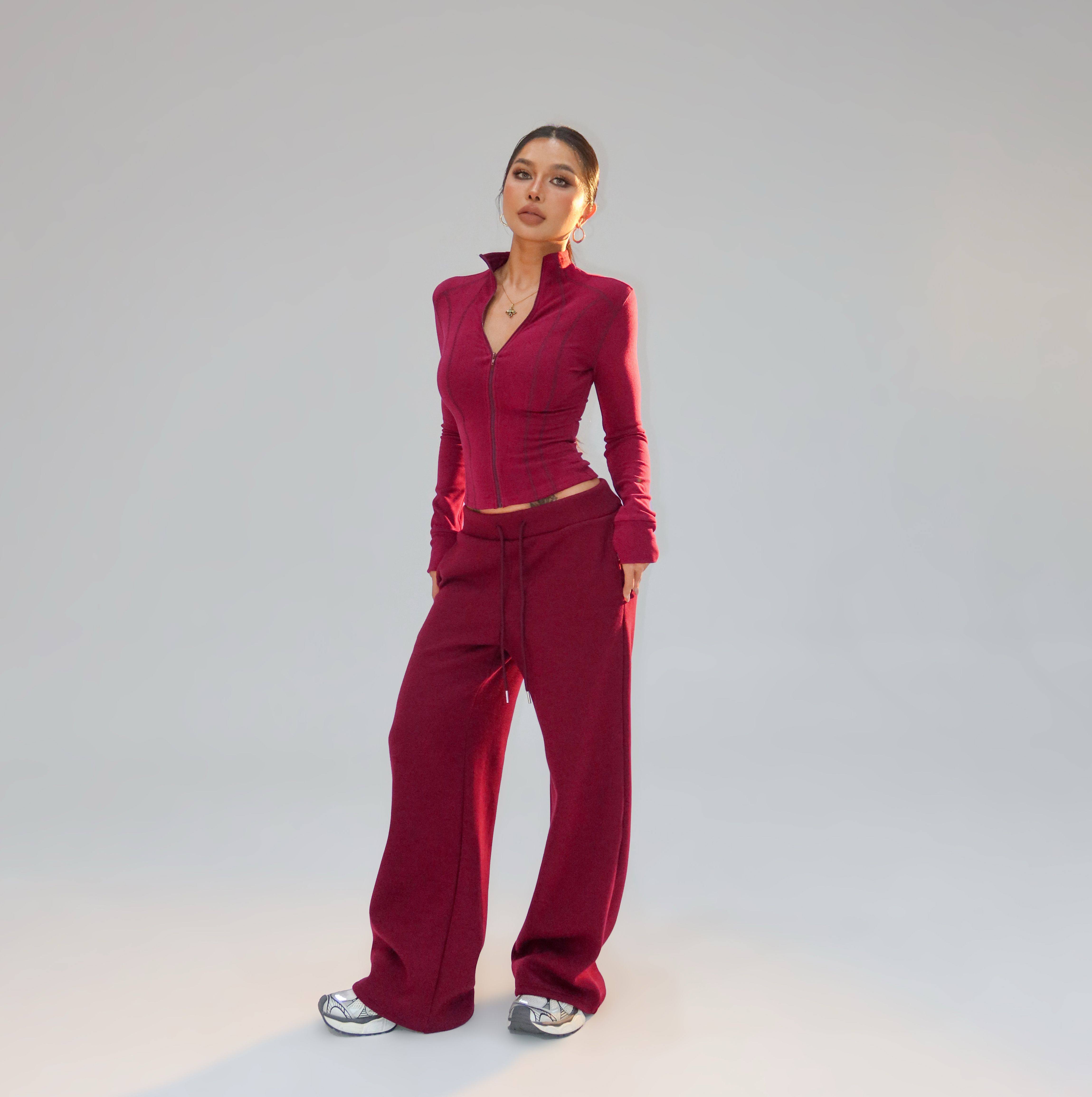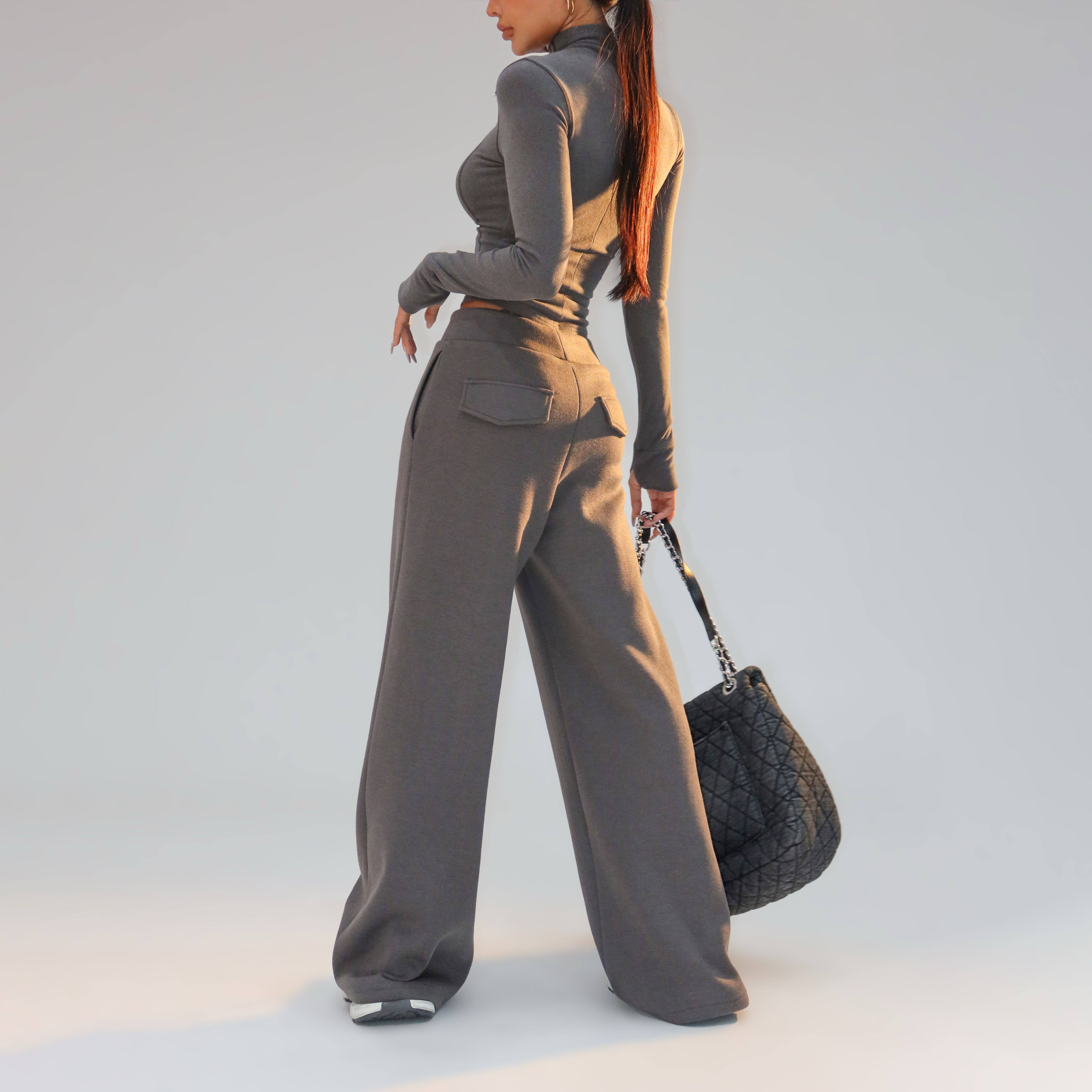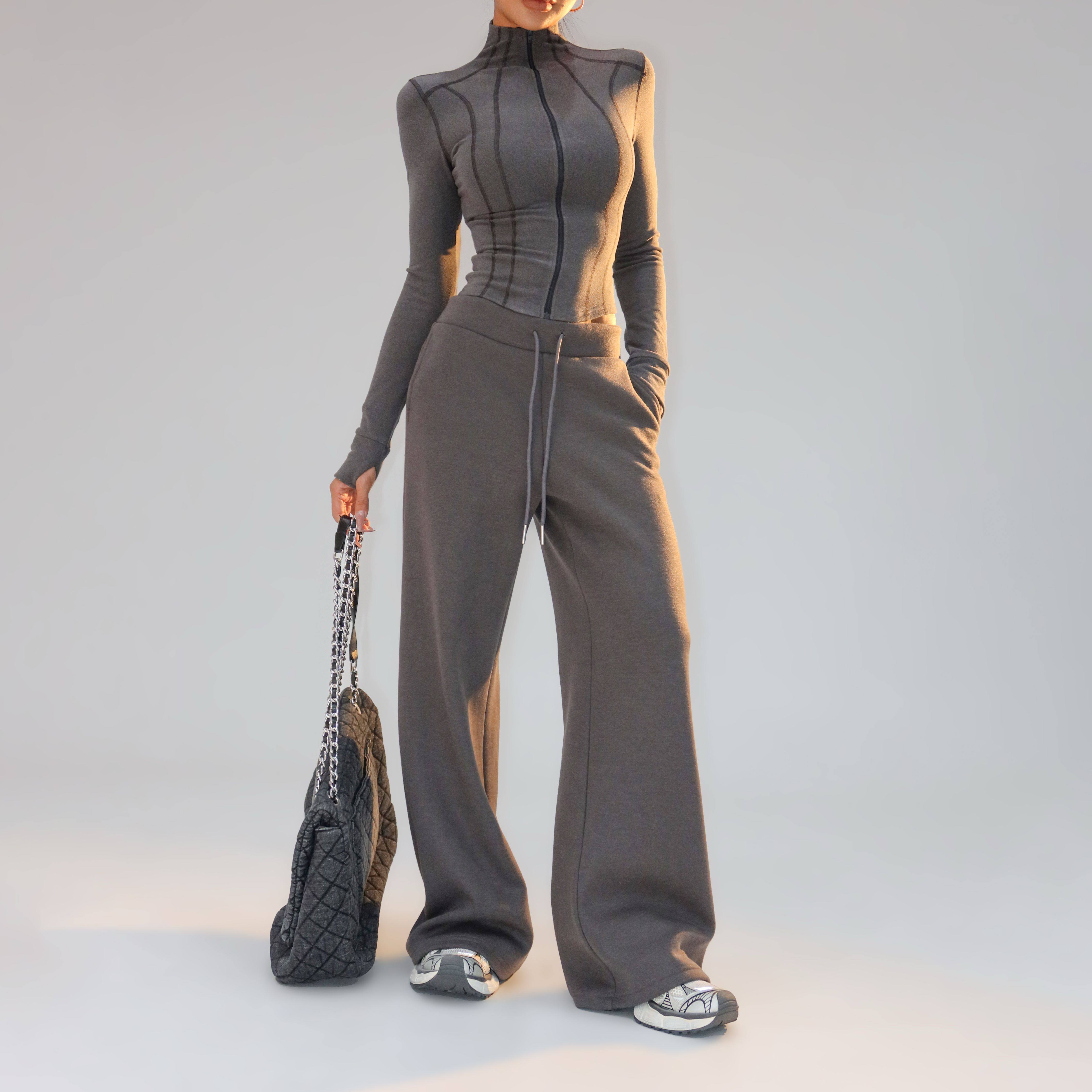 欧美辣妹修身 树莓燕麦 运动休闲加绒阔腿裤 卫裤 K170 蜜蜜家