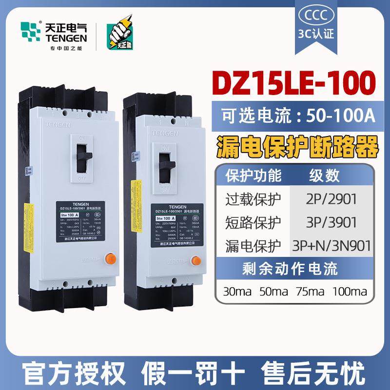 正泰动作电流10毫安漏电保护断路器DZ47LE 2P63A高度灵敏10MA漏保