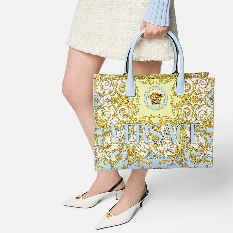女士La 范思哲 VERSACE Medusa印花大号帆布托特包 24期免息