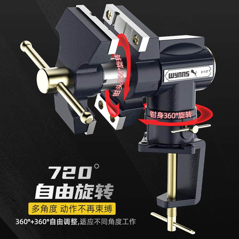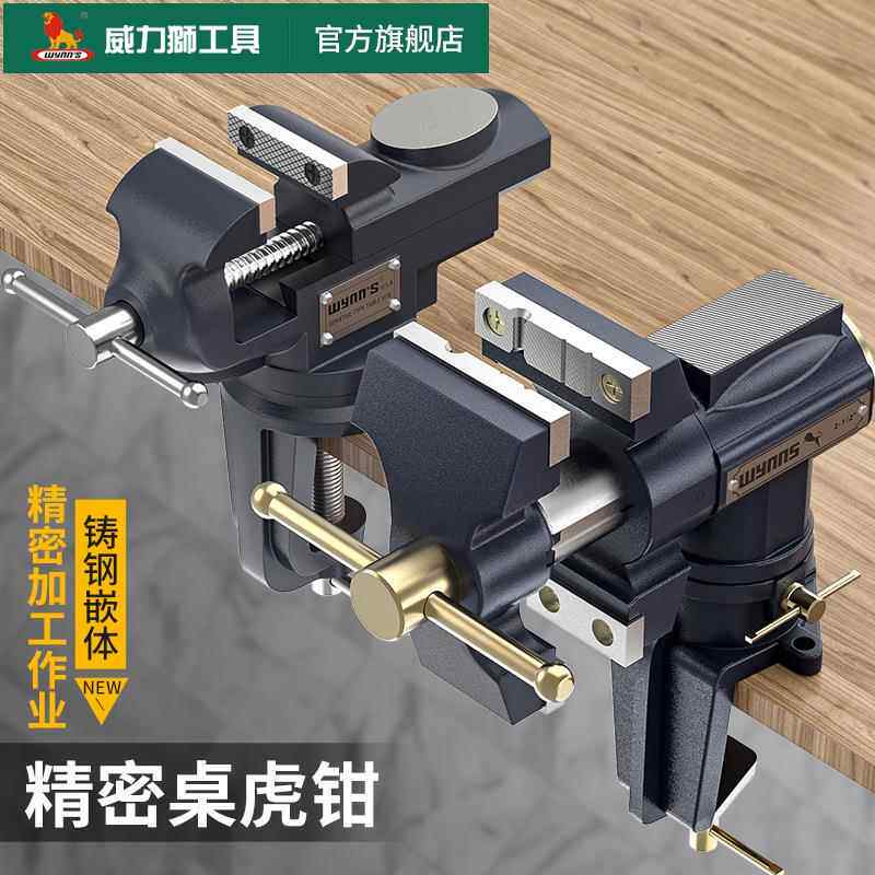 威力多672狮桌虎钳小型双台钳家用万向头功能钳台虎钳微型夹夹紧