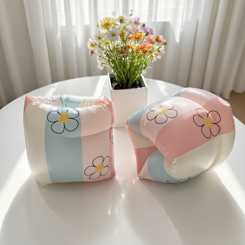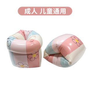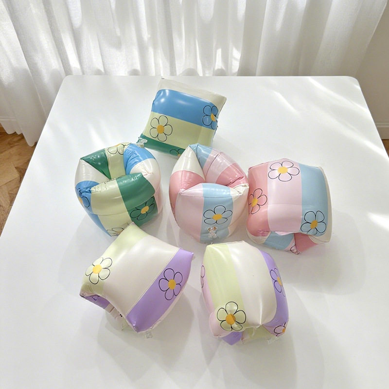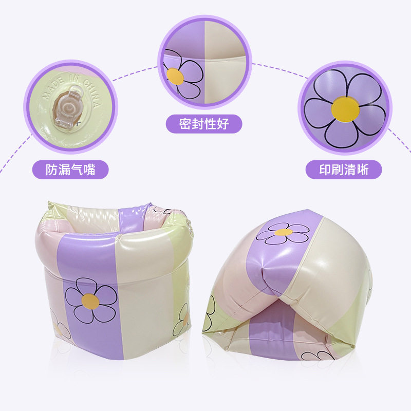 夏天卡通户外便携条纹花朵充气手臂圈初学者加厚双气囊游泳水袖