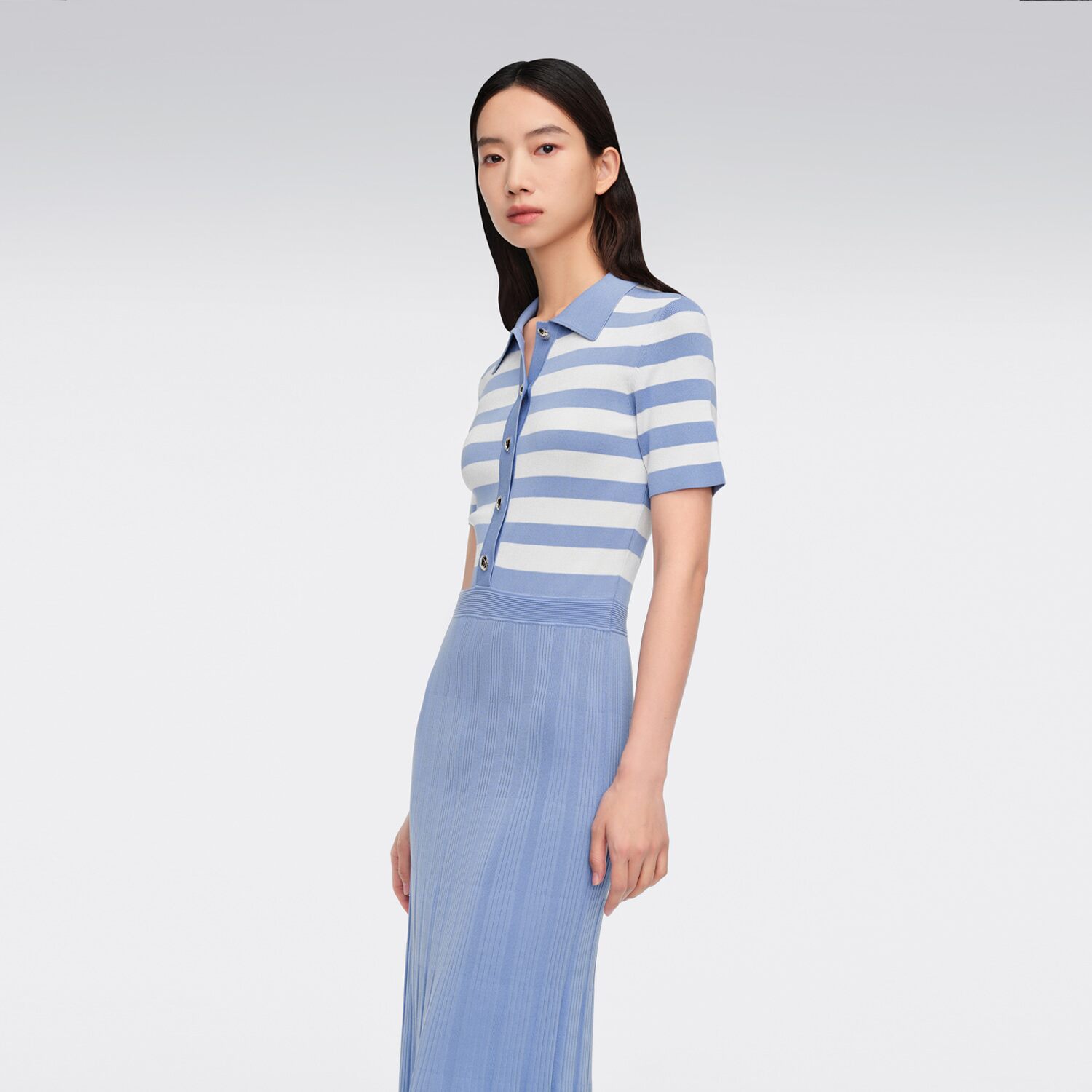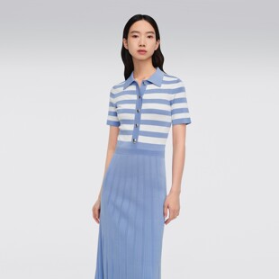 海军风条纹POLO领针织短袖 女装 OVV春夏新款 连衣裙 呼呼专享